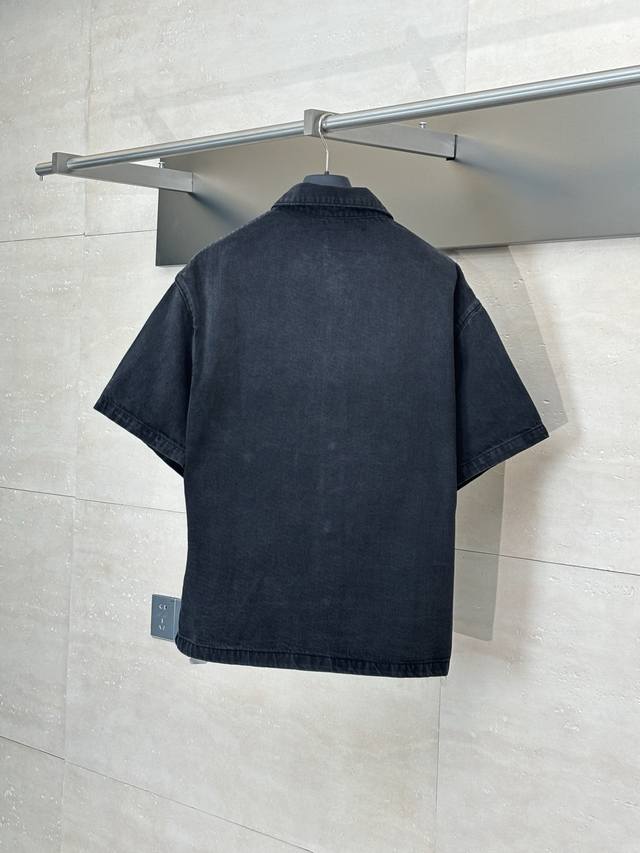 Prada* Prada 25Ss new classic solid color logo denim loose short-sleeved shirt