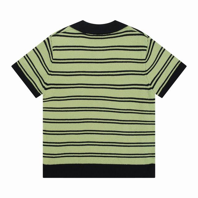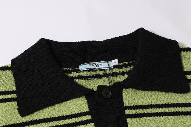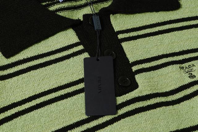/ Prada Prada blue and black striped badge embroidered Polo knit T-shirt Color: Gr