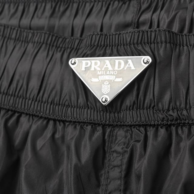 Prada Prada It is made of high-quality nylon material, which feels smooth, light and breathable, especially suitable for wearing in hot weather. The classic black is simple and elegant, and the iconic triangle logo at the waist is low-key and luxurious, which instantly enhances the overall texture. The elastic waist design is very tolerant of body shape and comfortable to wear. Paired with a simple black T- shirt and sneakers, it is casual and fashionable, and the rate of turning heads when going out is super high! Whether it is daily travel or sports and fitness, this pair of shorts can be easily grasped~