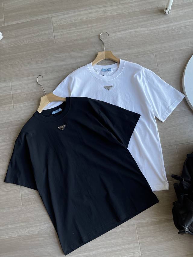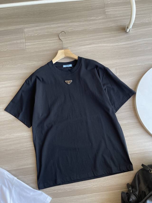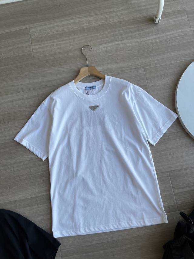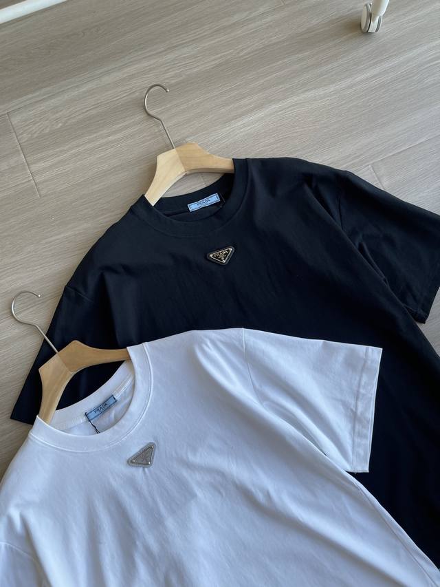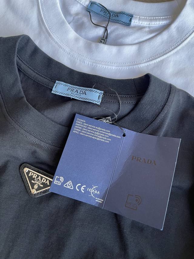 Prada Prada loose fit ribbed knitted cotton T-shirt short sleeves, unisex style
