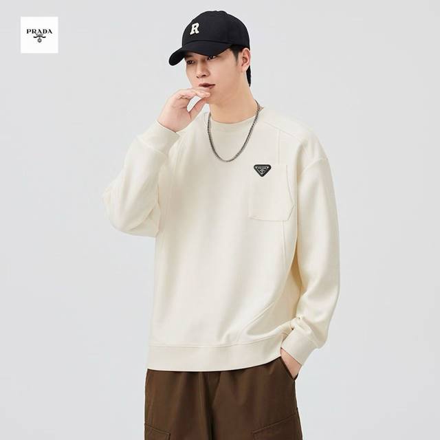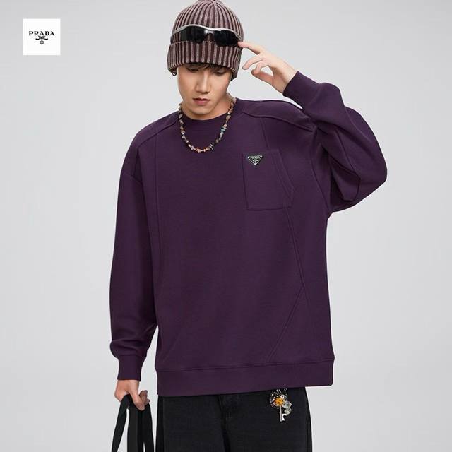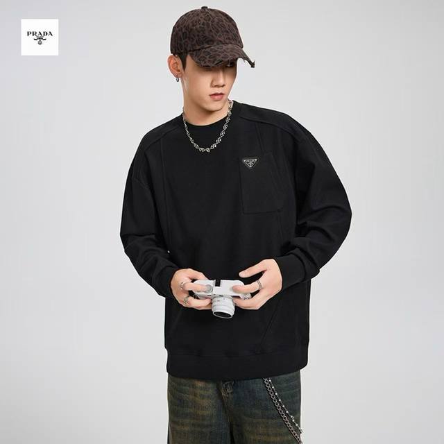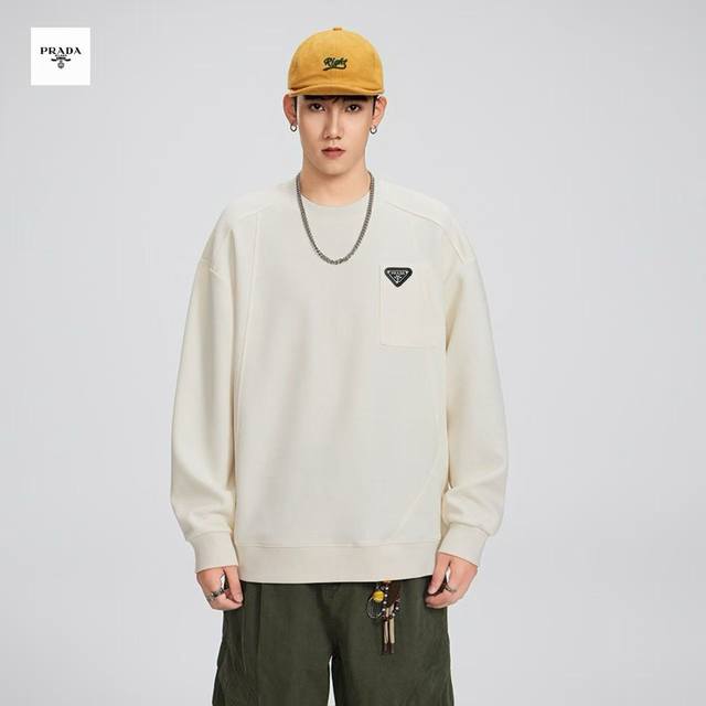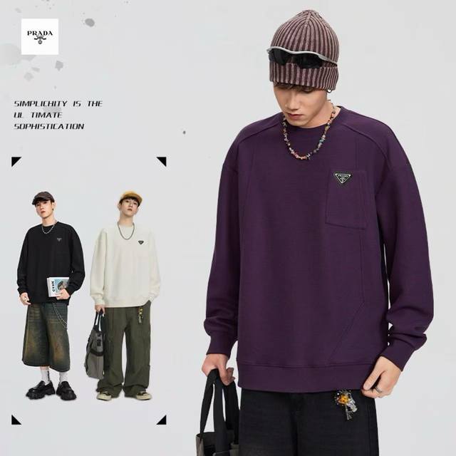 prada Prada overseas version 25Ss new three-color heavyweight American Ins design couple sweatshirt jacket!