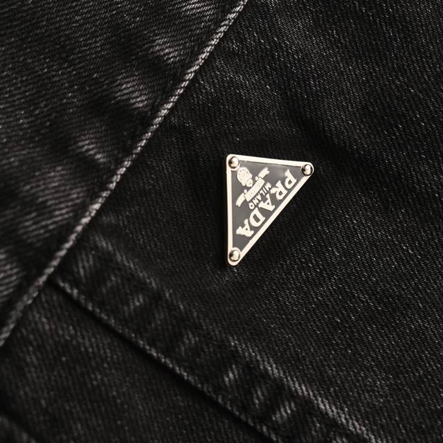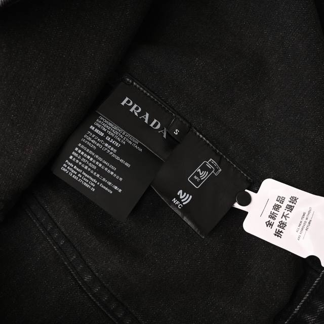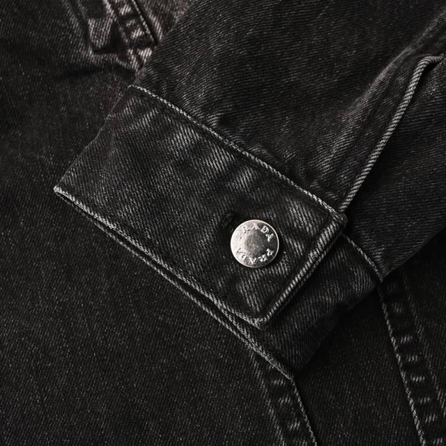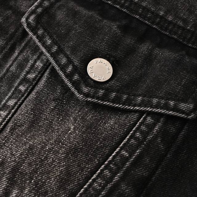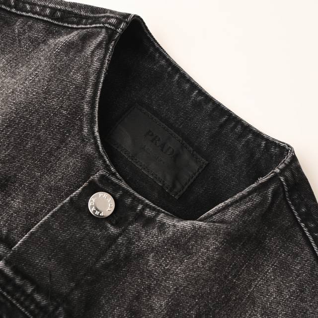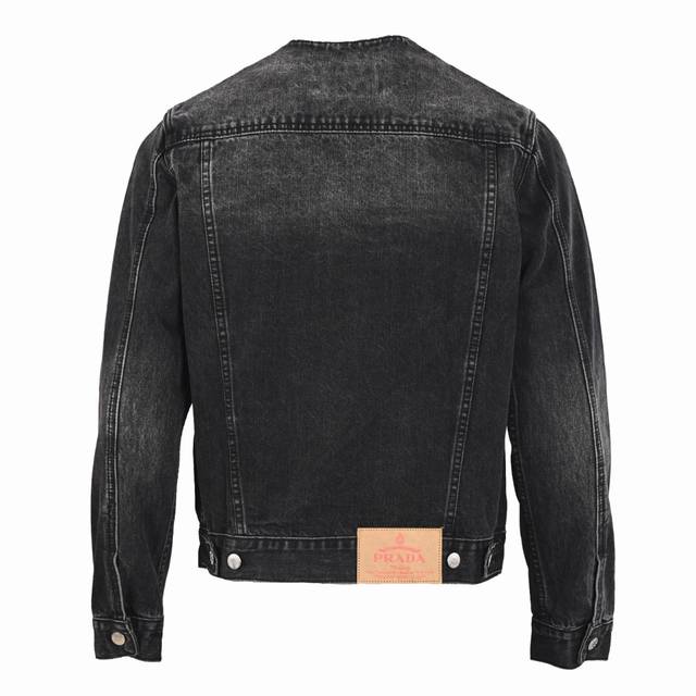 Prada Prada prd classic solid color washed round neck denim jacket authentic 76