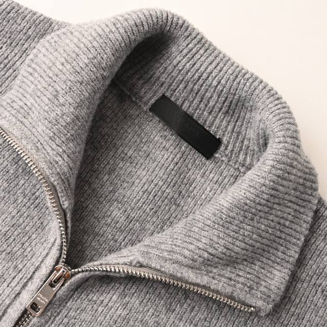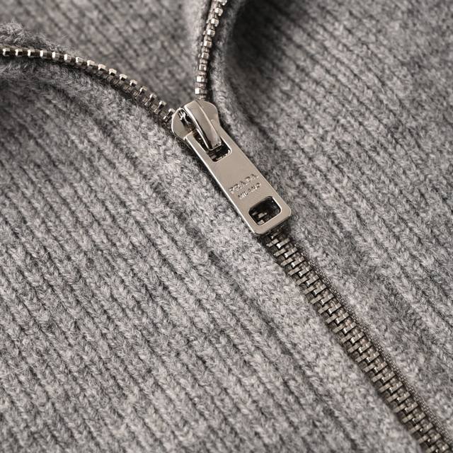 Prada PRD inverted triangle knitted zippered cardigan. Originally purchased at 20, this jacket is made of a cashmere and wool blend, weighing 880g. High quality and high weight, it's incredibly textured and comfortable. Custom-made with a metal zipper, the single zipper placket creates a stand-up collar for a stylish, defined silhouette. The hem features a ribbed hem and comes with all three standard logos, making it a hassle-free store experience. Suitable for both men and women. #All knitwear and sweaters are not recommended for machine washing or high-temperature drying. Size: SL