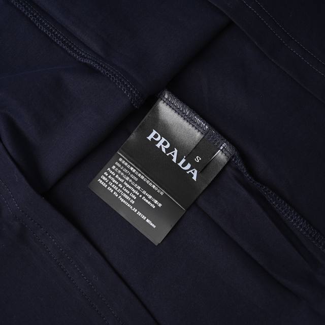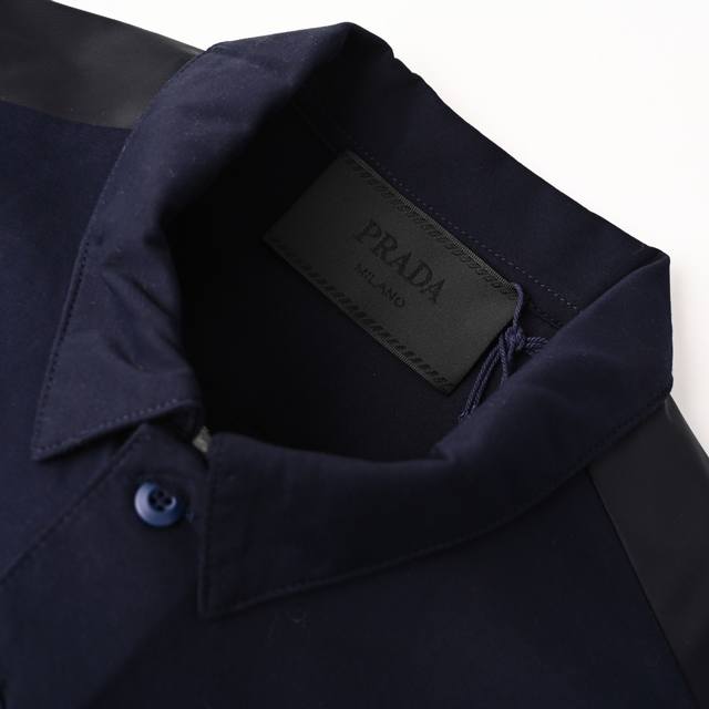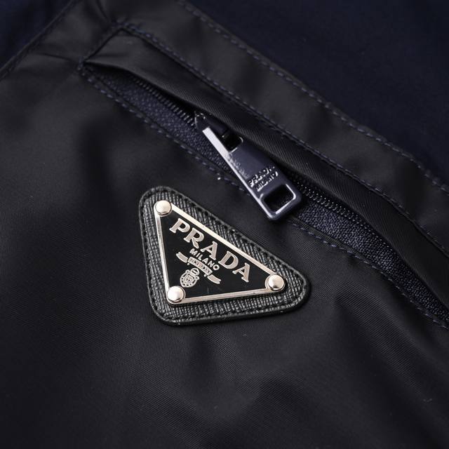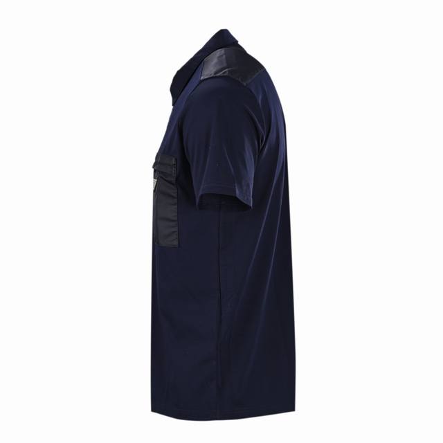 Prada Prd Nylon Zipper Pocket Stretch Cotton Short-Sleeved Polo Shirt in Navy Bl