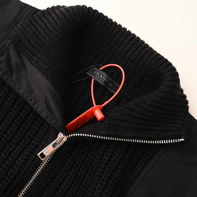 Prada PRD Triangle Logo Patchwork Knitted Sweater Cardigan. Made with custom Australian cotton fleece, this cardigan boasts a luxurious feel, is thick and substantial, and features imported infrared positioning technology for seamless stitching. The knitted pieces are joined together using a specific sewing technique, making the seams virtually invisible. Each pocket is hand-stitched and precisely controlled by artisans to ensure consistent size and height across the cardigan. Loose fit. #Machine washing and high-temperature tumble drying are not recommended for any knitted or sweater garments! Size: S-XL