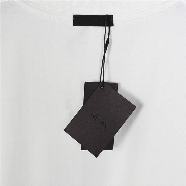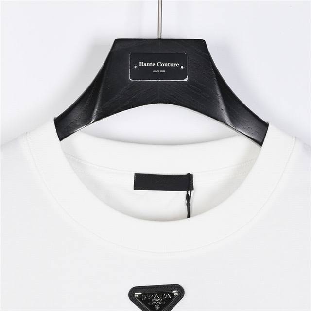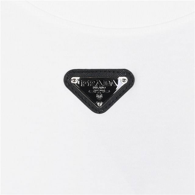 Prada short-sleeved T-shirt with metal triangle logo on the collar