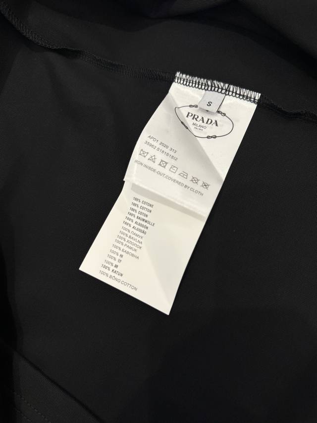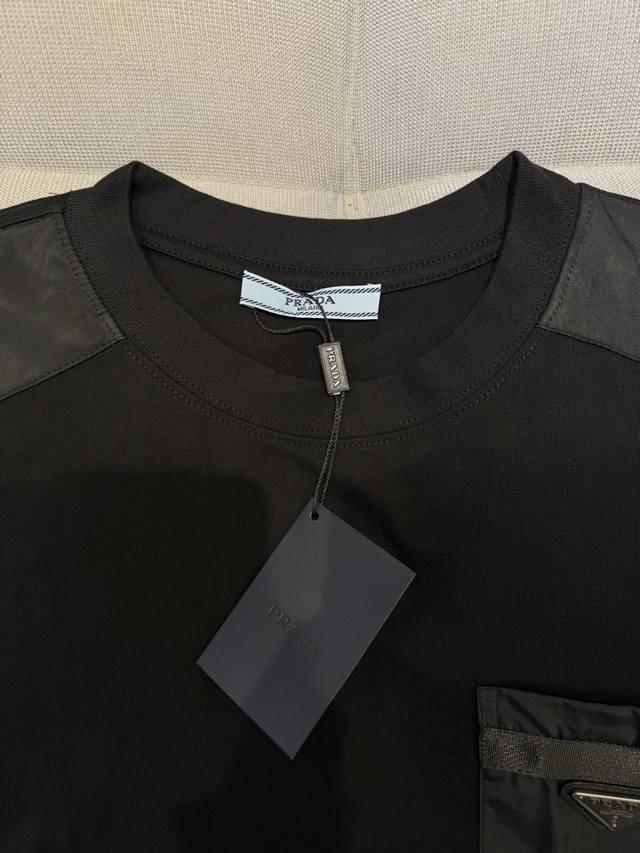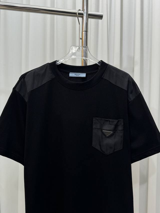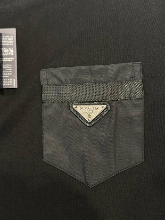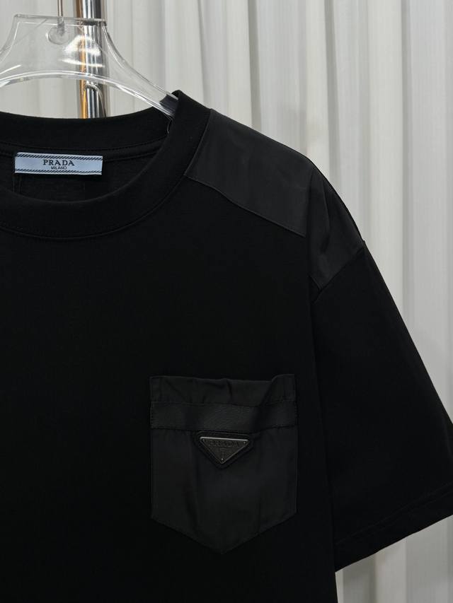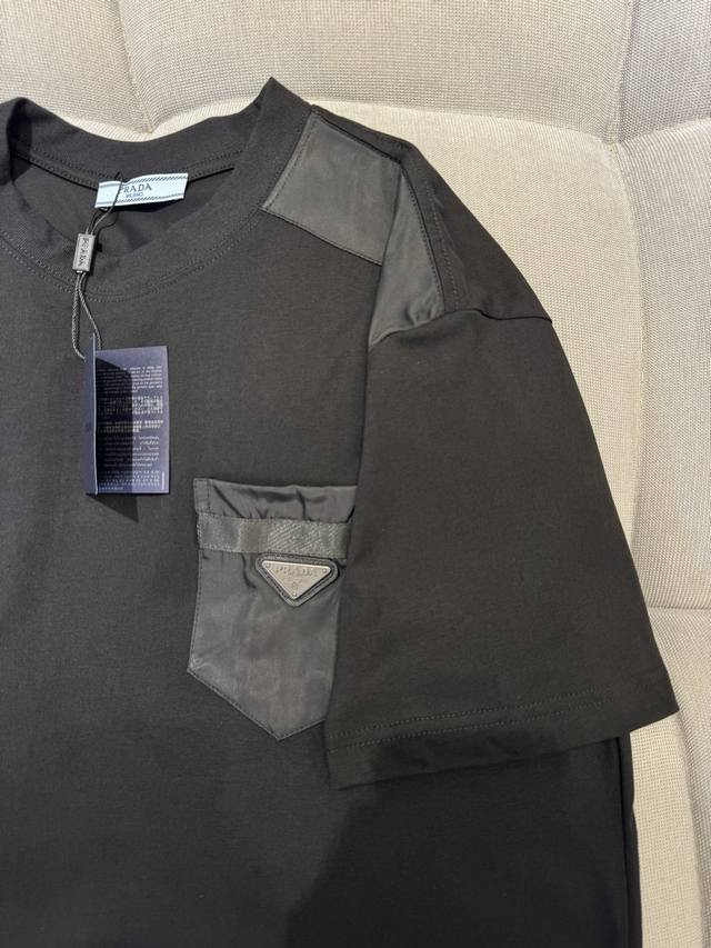 Prada shoulder woven stitching chest custom triangle badge logo pocket unisex short-sleeved T-shirt