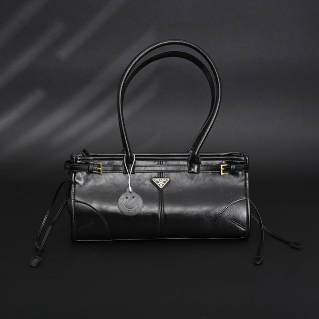 Prada Soft Lux Medium Handbag. A perfect blend of chic and vintage style, this bag features durable, high-quality waxed cowhide leather. The gold triangular metal logo highlights the brand's classic design and adds a unique charm. The detachable and adjustable leather shoulder strap allows for versatile carrying options