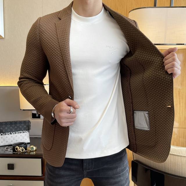 Prada SS Autumn Hot Selling Casual Knitted Blazer: The most fashionable and simple design, elegant and sophisticated, exuding refinement in a casual style. Fabric: This is a custom-made technical polyester fiber fabric; the design is not traditional, giving it a more youthful and fashionable look. The details are very meticulous. The fit is a regular style, but the cut is very special. It's neither too loose nor too fitted, but rather a perfect fit, flattering for all body types. Sizes: 48-56