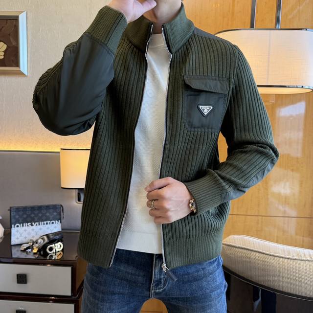 Prada SS Autumn Hot Selling Wool Jacket, made of custom high-quality polyester fiber fabric! Top fashion brand element logo design, complete with all three labels! Original hardware accessories, smooth lines, exquisite craftsmanship, superb fit, comfortable fabric, windproof and warm, easy to match and very stylish. A must-have for fashionable men! Sizes: M-3XL. Model 178cm, 145kg wears L,
