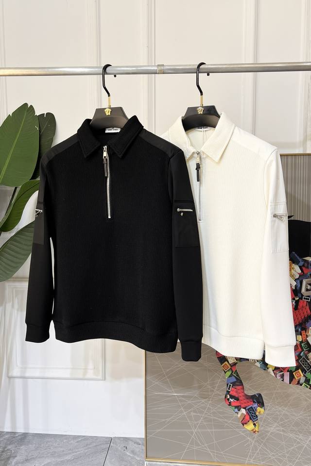 Prada SS Fall Hot New Arrival: Top-Quality Fashionable Pullover Knit Sweatshirt, a classic piece that's a must-have every year. Favored and recommended by numerous celebrities, made from select high-end European cotton blend fabric, meticulously crafted, featuring original hardware and logo design, soft, smooth, and densely textured! Stylish and fashionable when worn! An impeccable must-have style for fall! Sizes M-3XL. Model 178cm, 145kg, wearing size L (