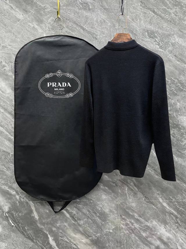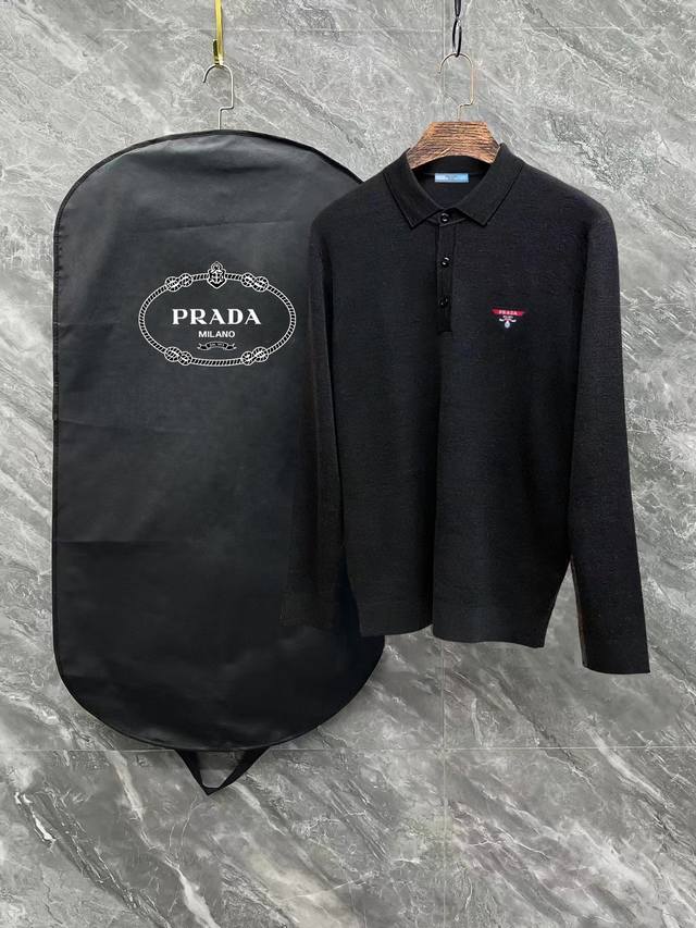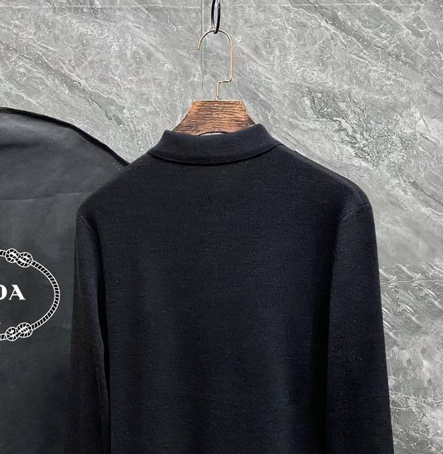 Prada Ss latest men's casual polo collar wool sweater. The fabric is delicate, soft, comfortable, skin-friendly, warm, and resistant to deformation. It features a simple yet sophisticated style, and the logo on the chest is exquisitely crafted! It looks great on. Colors: Black, Gray. Sizes: S-XL.