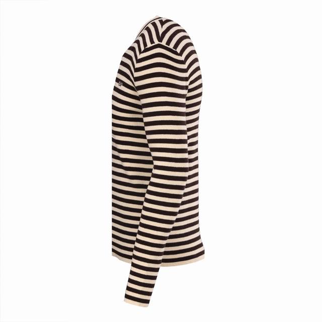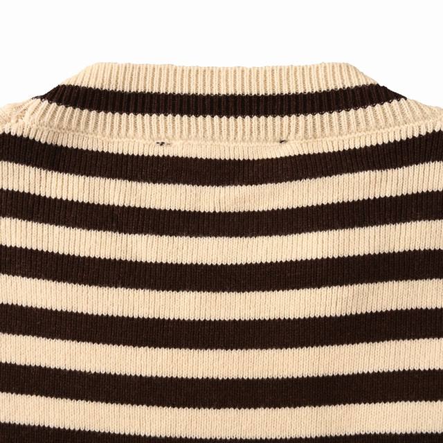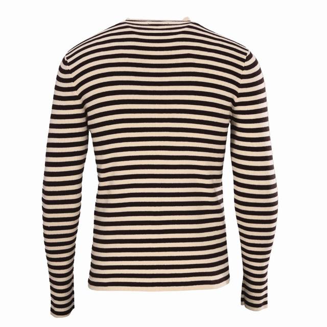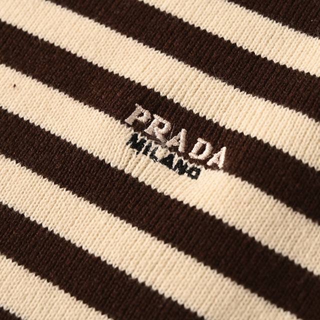 Prada striped embroidered crew neck sweater. Made of custom-woven mercerized wool blend knit fabric, using imported machine embroidery technology. The three-dimensional stitching at the seams gives the garment a more three-dimensional and body-hugging effect. The workmanship is intricate and complex. The garment undergoes a washing and deodorizing process using professional washing equipment and specific detergents to deeply clean and deodorize the garment, improving its feel and appearance. Custom-made accessories. Loose fit. #Machine washing or high-temperature tumble drying is not recommended for any knitted or sweater garments! Sizes: 48 50 52 54