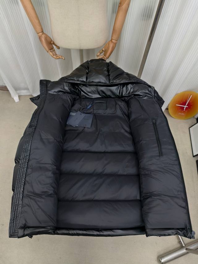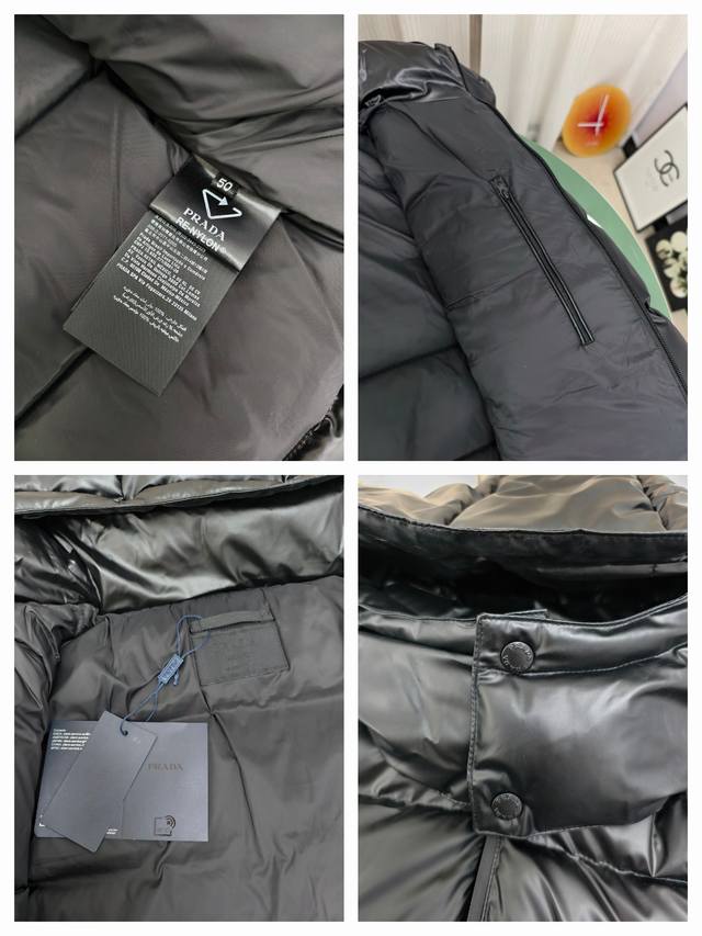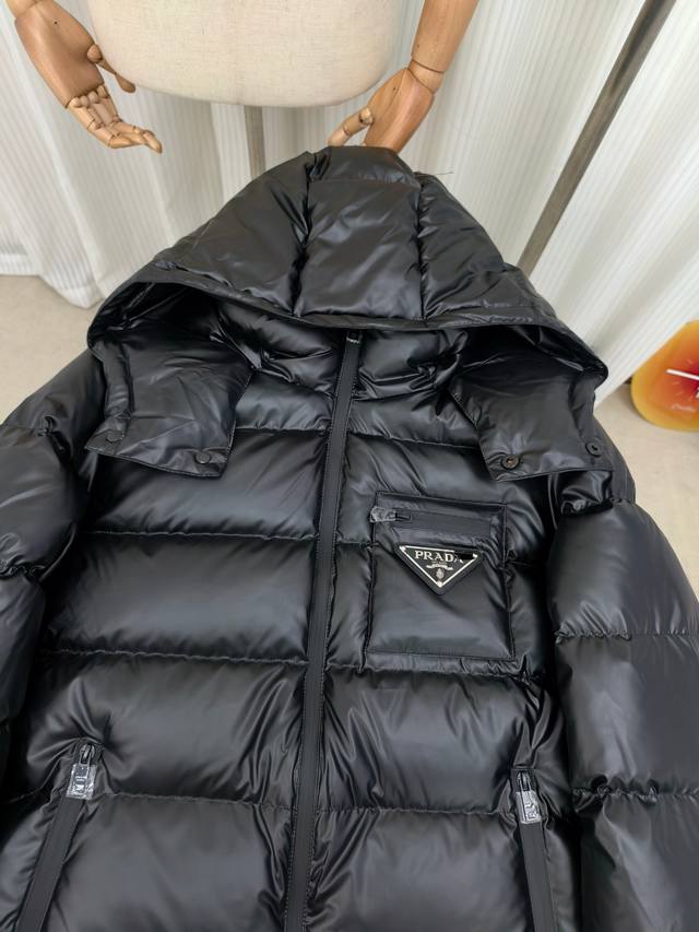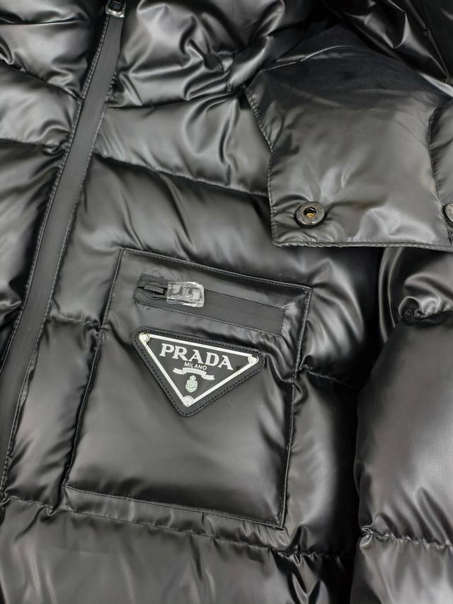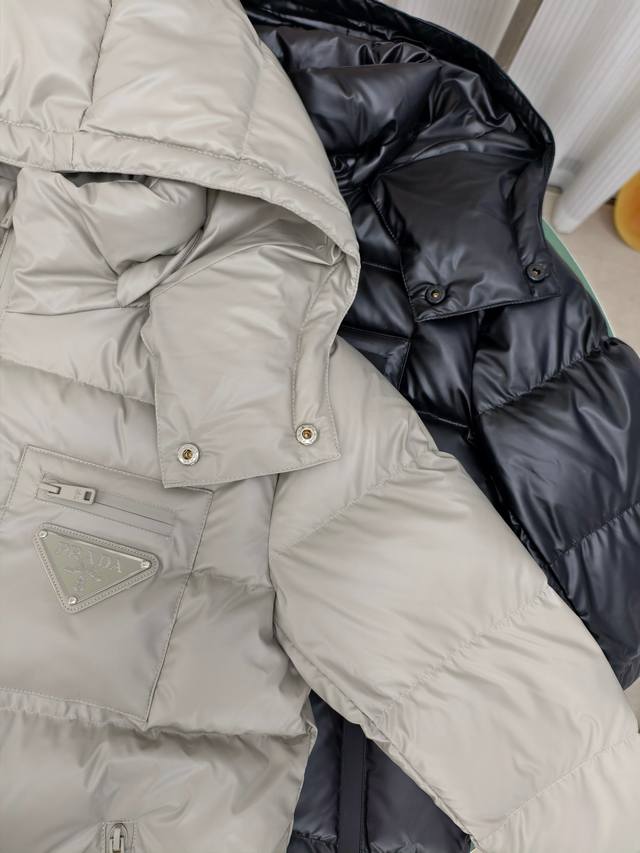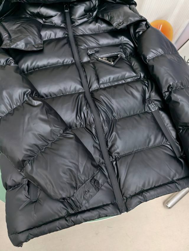 Prada thick down jacket, high-end men's down coat, trendy new autumn/winter item, custom-made for customers. Unique design style, triangular tag on the chest pocket for easy identification, zippered pockets for warmth and metallic elements, classic and stylish hooded design for excellent warmth and comfort, exquisite details, interior pockets, fashionable style, excellent stitching and workmanship, high quality will not disappoint, highly recommended fit, flattering on everyone, exudes style, will turn heads, a great product that stands up to comparison, fashionable and sophisticated, incredibly stylish, this style is truly worth buying. Colors: Black, Khaki. Sizes: 48-50-52-54-56 M