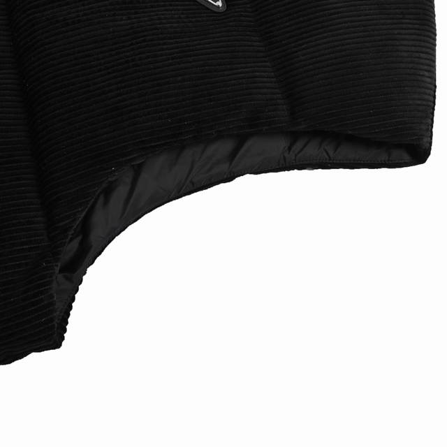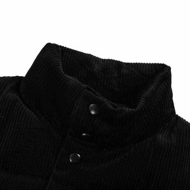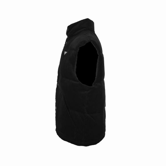 Prada Triangle Logo Corduroy Down Vest, Navy Blue (Ddd) This short-cut corduroy down vest embodies Prada's eclectic personality. The metal triangle logo showcases its iconic element. Corduroy is a production pain point, resulting in significant fabric variations in sheen and nap, leading to substantial waste. Custom-woven and dyed fabric eliminates concerns about color differences. The fabric density is also excellent, ensuring superb drape. In terms of texture and feel, it surpasses the alloy version. A 1:1 replica of this style, regardless of cost (Ddd). Size: S-XL (DDD)