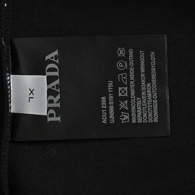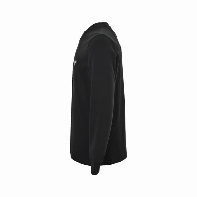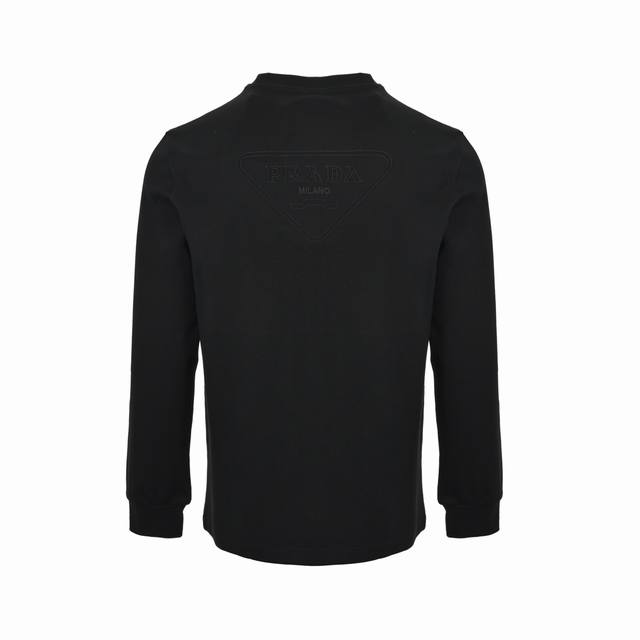 Prada Triangle Logo Embroidered Long-Sleeve T-Shirt. Made of custom-woven, dyed, washed, smooth long-staple cotton, 310g/m?, latest boutique style. A classic, versatile, and easy-to-match long-sleeve base layer. Features a metal triangle logo and a small pocket on the chest, a simple yet sophisticated design! Made of G-wash pure cotton plain weave fabric, incredibly soft against the skin! Unisex! Features a metal triangle logo inlay on the chest and a 3D embroidered arched triangle logo on the back. The loose fit is flattering for all body types, combining style and functionality! Colors: Black, White. Size: M-XL.