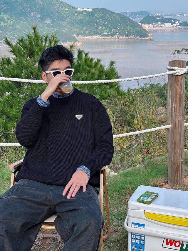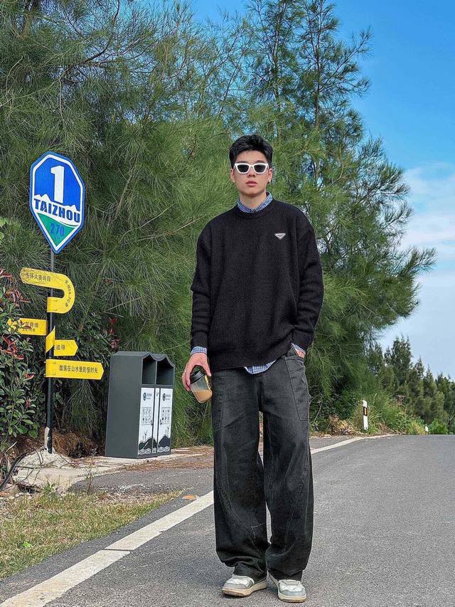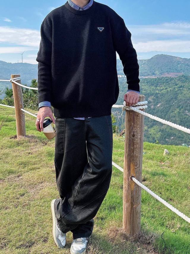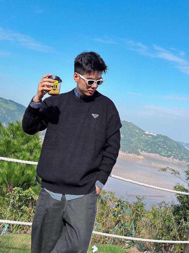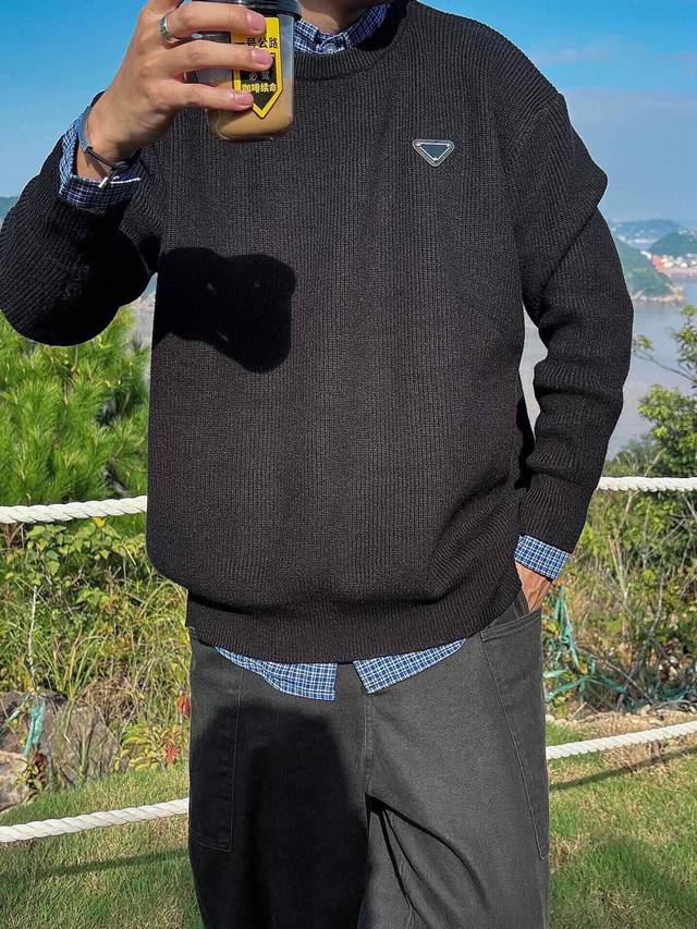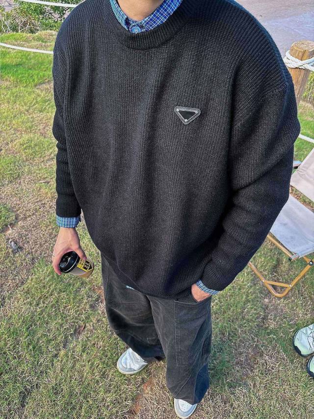 Prada Triangle Logo Long-Sleeve Sweater High-end custom sweater, especially beau