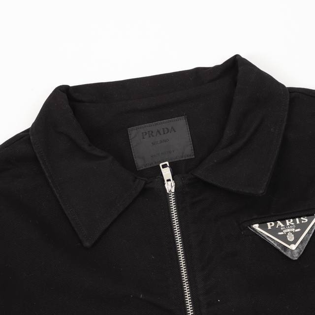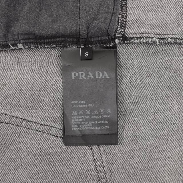Prada washed denim jacket with triangle logo. Size: Xs-L.