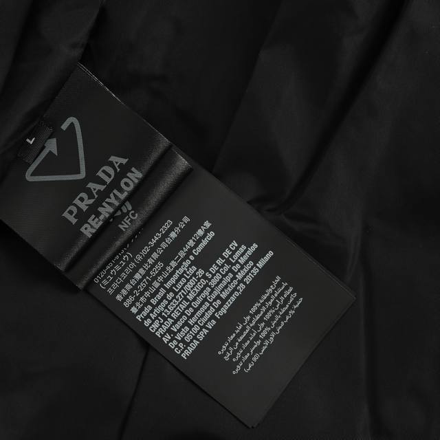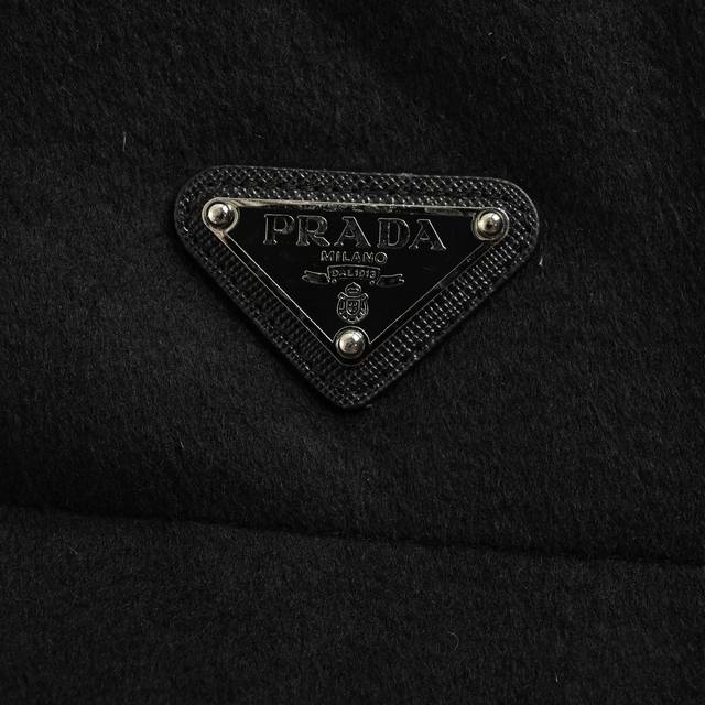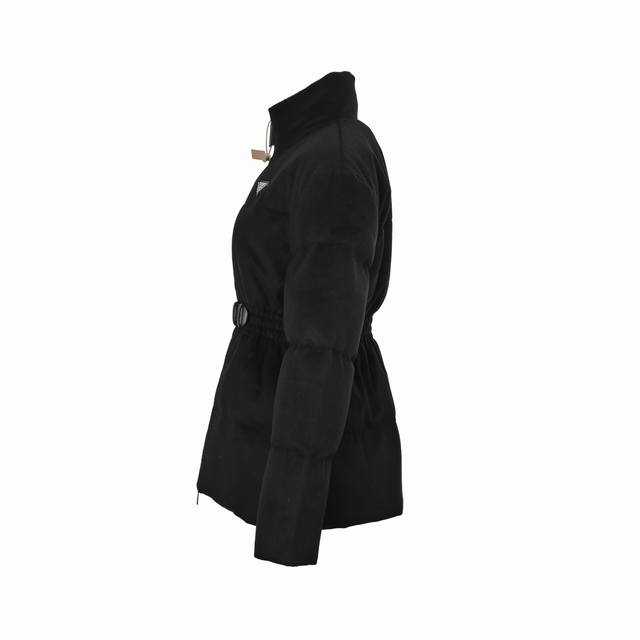 Prada Autumn/Winter Waist-cinching Down Jacket, black outer layer + white goose down filling, excellent warmth. Stand collar + belt waist-cinching design