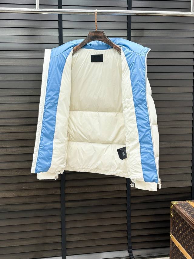prada#25 Autumn/Winter Men's Fashion Stand Collar Down Jacket DDD A light luxury, fashionable, and casual style, lightweight, warm, and soft! A low-key, fashionable, and versatile piece that's undeniably stylish! A Hong Kong trade order item, a must-have item! As a brand that everyone admires, their control over the source of goods is undoubtedly strict. This very cool, lightweight, and flowing hooded down jacket DDD features a more attractive logo badge; a small hood design, functional slanted pockets on both sides, and high-quality original paint snap buttons, easily showcasing brand recognition and superior performance. It's absolutely eye-catching when worn!!! The overall material is also superb! Made with imported Italian fabric, it has the high-end feel of a century-old brand DDD The inner lining is made of 90% white goose down and 10% feathers, with full horizontal quilting for a fluffy and highly elastic feel. The outer layer is 100% nylon fabric. If in doubt, you can disassemble and inspect it. It boasts extremely high down filling, a perfect fit, and a stylish yet not bulky design, embodying the series' minimalist aesthetic. The wearer is lightweight and warm, providing excellent protection against the cold. A high-street luxury item that combines style and performance, a super heavyweight piece that will definitely turn heads! Colors: Black, White, Red, Blue. Sizes: M, L, XL, 2XL, 3XL.