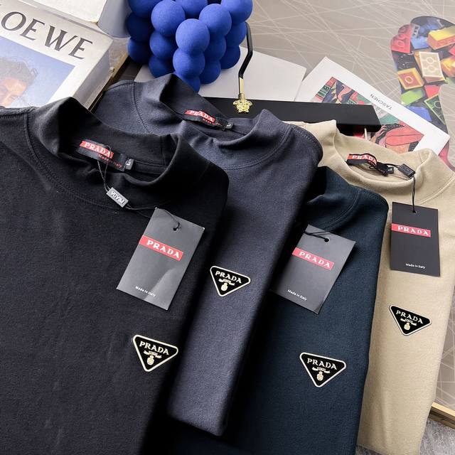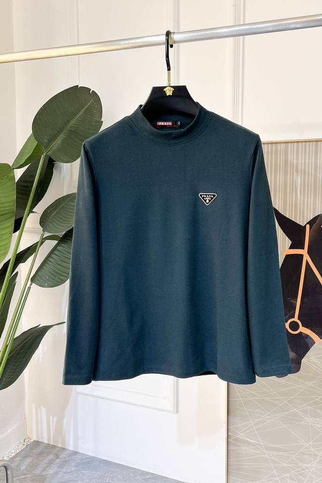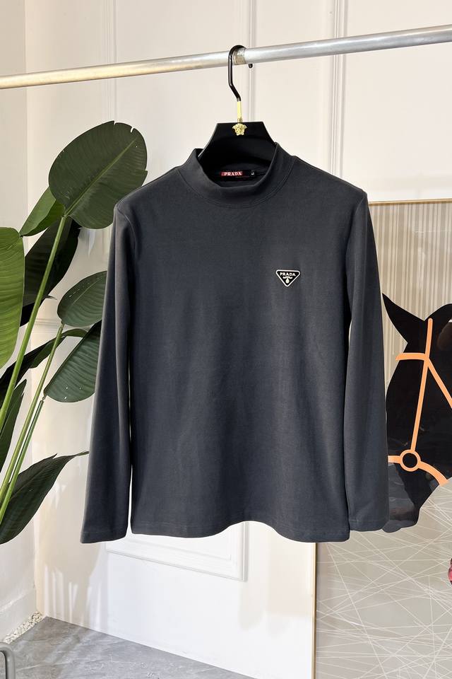 Prada's early autumn new men's long-sleeved base layer shirt, made of custom high-grade cotton fabric with a stylish designer logo design. Soft, delicate, comfortable, and warm, it features multiple craftsmanship processes. A must-have basic base layer shirt for every man's wardrobe, it can be paired with various outfits anytime, anywhere to meet your daily needs. The design is simple yet sophisticated. Grab yours now! Standard fit, sizes: M~3XL