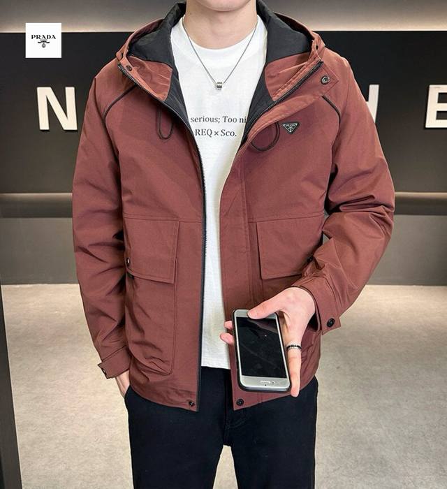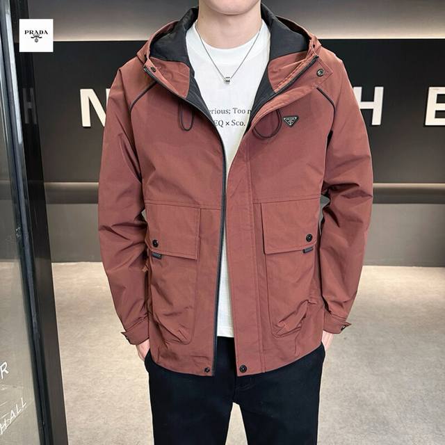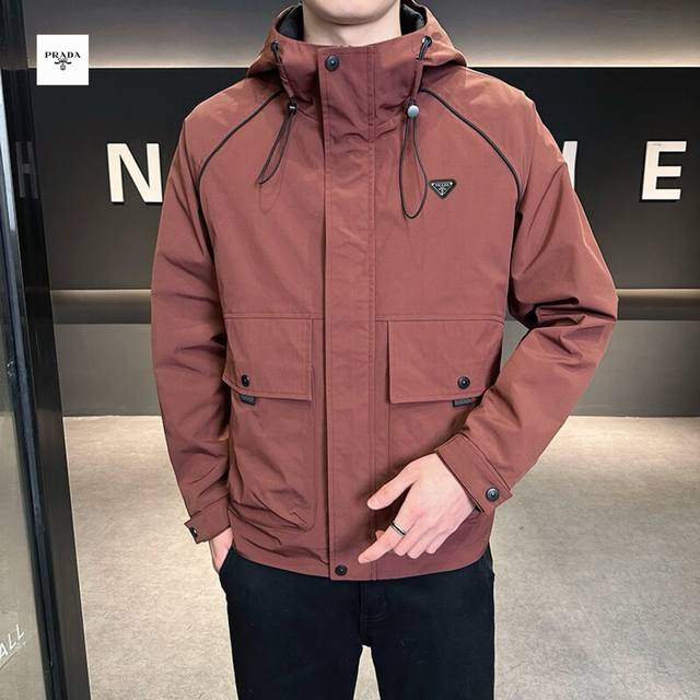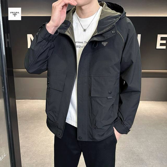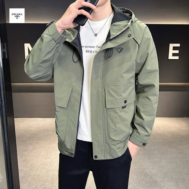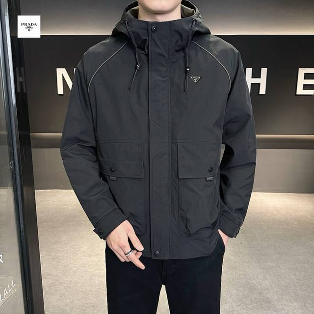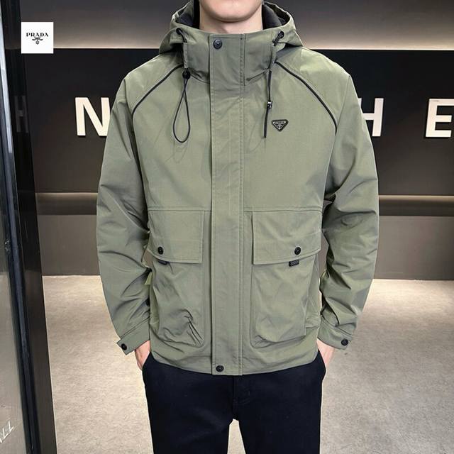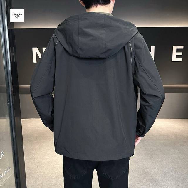 Prada's new 2025 Prada overseas edition three-color Ins workwear hooded jacket is trendy and stylish!