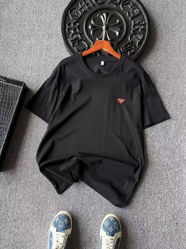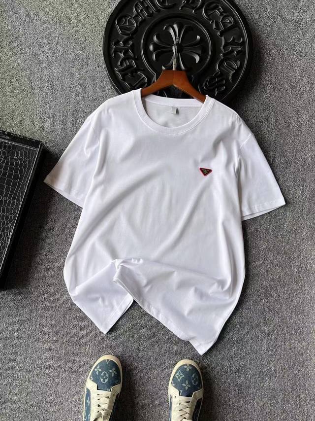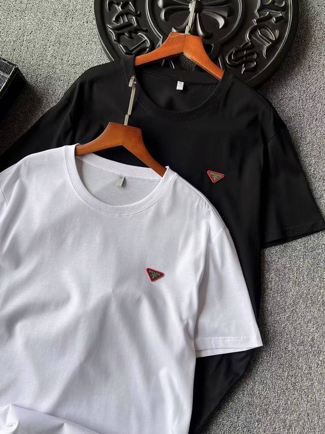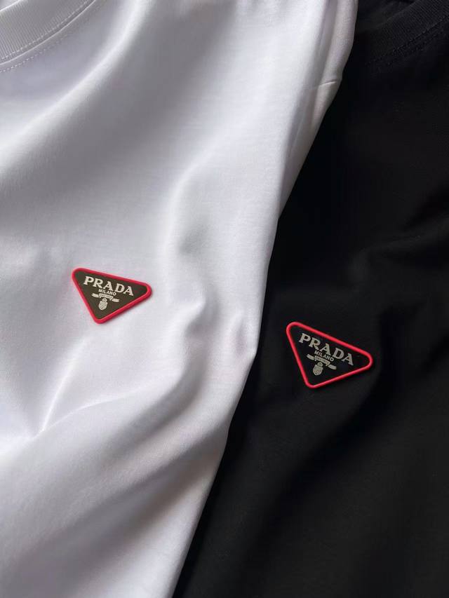 Detail after detail! Prada's new jade silk T-shirt! Featuring an imported, high-end silicone inverted triangle on the chest and an embedded tungsten steel Prada laser metal label, the detail is truly exquisite! Double-needle reinforced collar and a single-cylinder pure cotton collar banding for a more skin-friendly feel. Exquisite detailing and meticulous workmanship are evident!