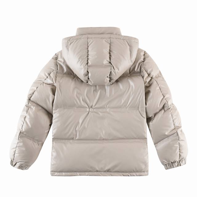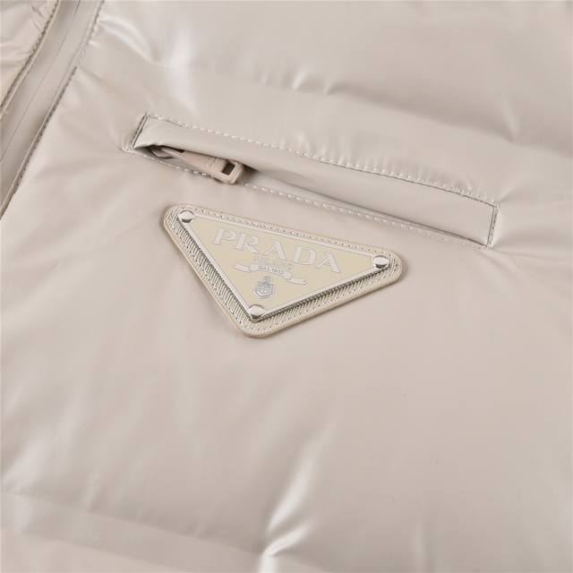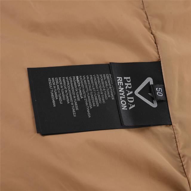 This down jacket is made from innovative recycled nylon fabric, giving it a novel and unique look. Filled with 90% white duck down and 10% feathers, it offers excellent warmth, making it suitable even in cold weather. The enamel triangular logo on the chest adds a touch of craftsmanship and brand style. - This Rada short-cut down nylon jacket features a hood, zipper, and elasticated side panels. The iconic triangular logo is reinterpreted as an all-over quilted pattern, becoming a structural element of this Re-Nylon down jacket, giving it a very sophisticated look