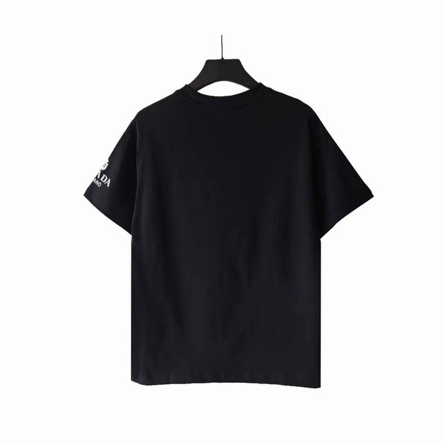 Real shot details + size chart. Prada 24Ss triangle logo sleeve print short-sleeved T-shirt. Upgraded, inspired by 80s retro style. Original fabric, same style short-sleeved T-shirt. Custom dyed fabric, very comfortable to the touch. Newest spring/summer style, fashionable and unique, super versatile and good-looking. Suitable for both men and women, a must-have. Complete with hangtag, neck label, wash label, and three tags. Colors: White, Black. Sizes: XS-L.
