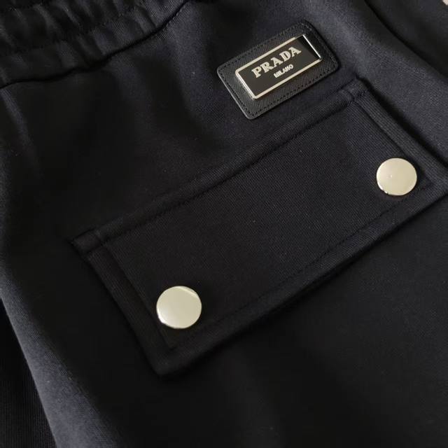 Real shot details + size chart. Prada button pocket casual trousers. Custom triangular leather patch. Made of high-gram-weight cotton fabric. Unisex casual trousers. Highly recommended to have one in each color. Effortlessly suitable for any large business occasion or high-end private club! Highly recommended! Color: Black and White Kq109 Size: Xs-L