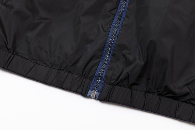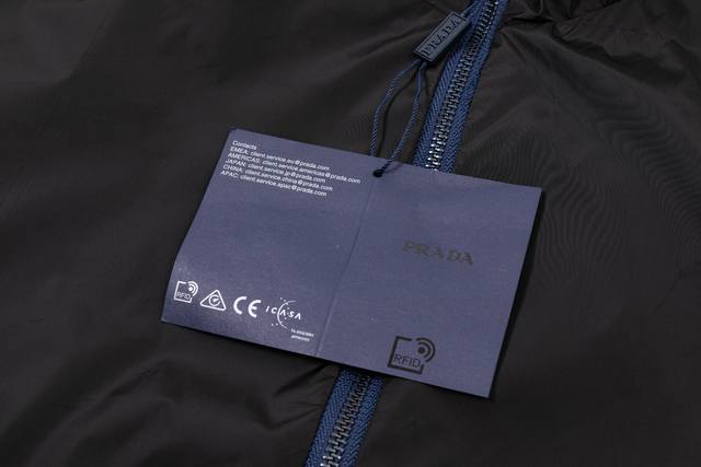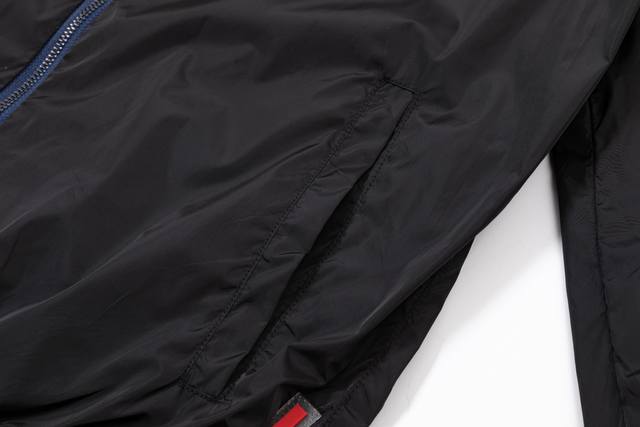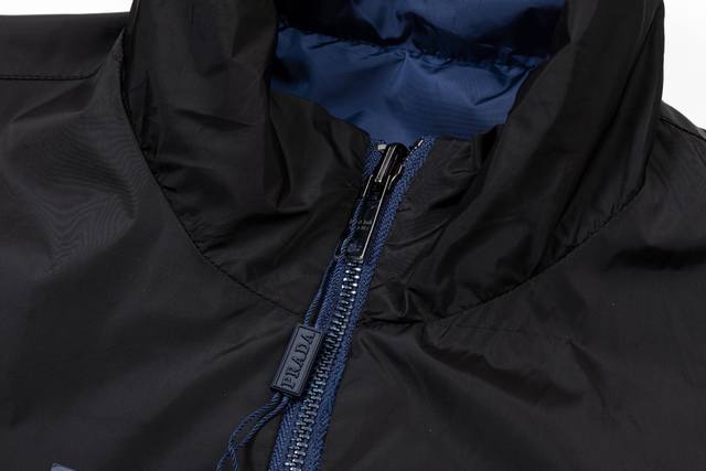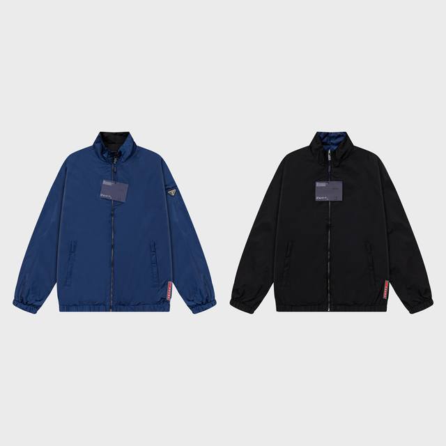 Reversible Prada 2025 Fall/Winter New Stand Collar Trench Jacket, same style as official website, classic hardware triangle logo, red leather straps, fashionable and elegant design, meticulous workmanship, neat stitching, good fit, original custom hardware zipper. Sizes: M-3XL. Colors: Royal Blue, Black.