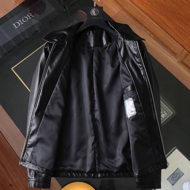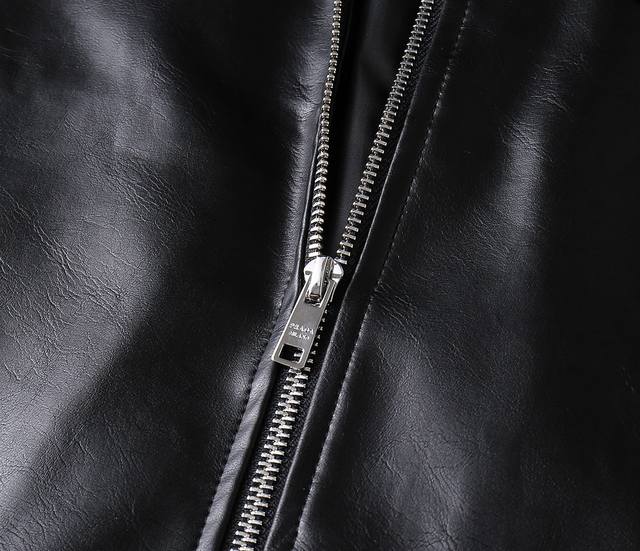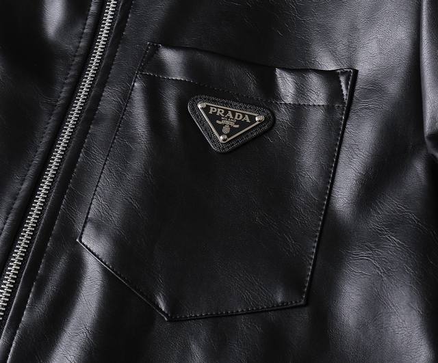 Same style as Prada official website! 2025 Spring/Autumn new men's leather jacket, original single, complete with all three labels, high-end version! Custom-made fabric from the boutique, highly breathable and comfortable, impeccable details, brand elements and design concepts, reflecting high quality. Delicate and soft to the touch! Presents a casual cut, the fit is superb! Sizes: M~3XL, largest size 200 lbs, please provide your height and weight when ordering! DDD