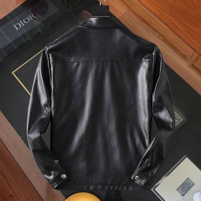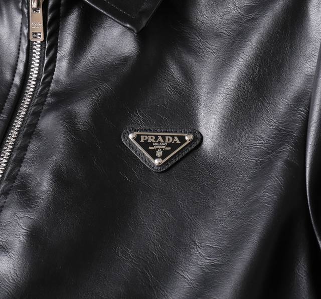 Same style as Prada official website! 2025 Spring/Autumn new men's leather jacket, original single, complete with all three labels, high-end version! Custom-made fabric from the boutique, highly breathable and comfortable, impeccable details, brand elements and design concepts, reflecting high quality. Delicate and soft to the touch! Presents a casual cut, the fit is superb! Sizes: M~3XL, largest size 200 lbs, please provide your height and weight when ordering! DDD