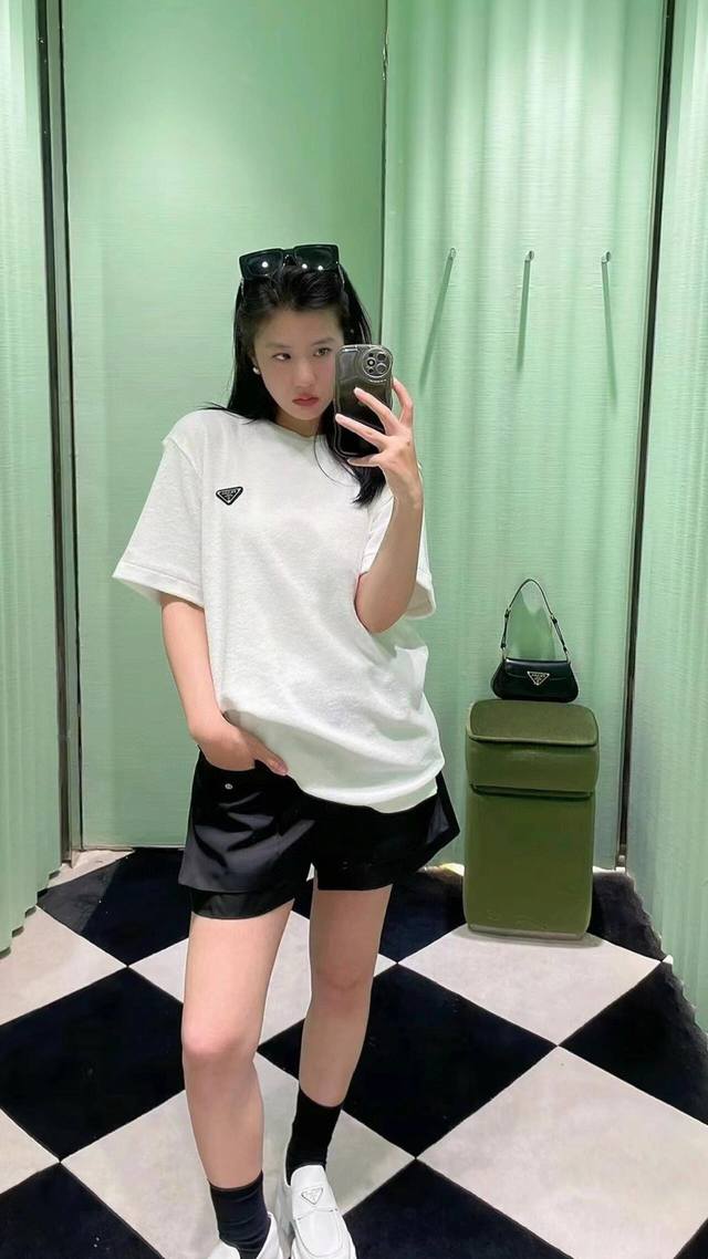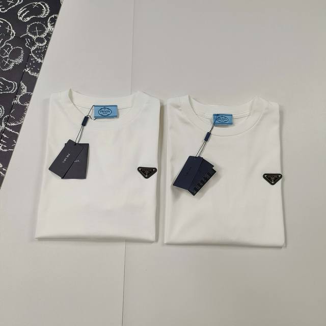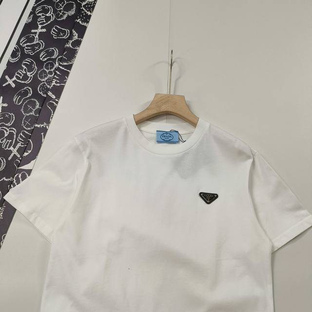 Prada 2025 Ss left triangle logo short-sleeved T-shirt