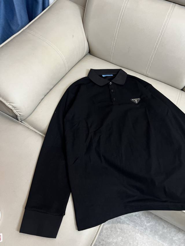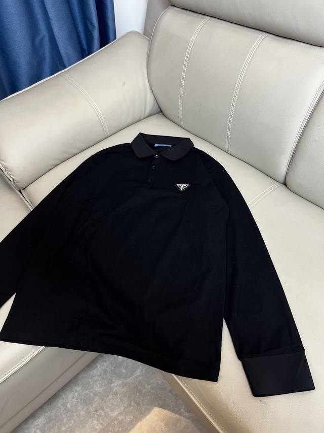 Prada 2025Ss New Fashion Casual Lapel Polo Shirt, Suitable for Single Wear, Business Casual, High-End Fine Wool, Pure Faux Two-Piece Long-Sleeved Lapel Polo Shirt, Comfortable and Warm! Anti-pilling, Non-irritating to the skin, can be worn next to the skin, luxurious and classic design elements! No overly complicated processes, just a fusion of design and materials. A simple European style, a must-have for autumn and winter. Retail sizes: S-XL