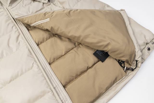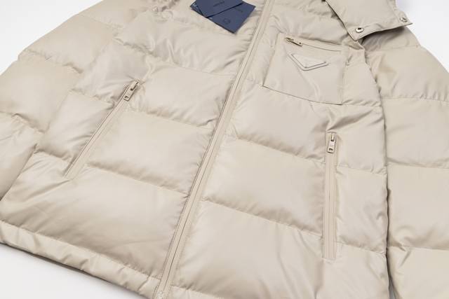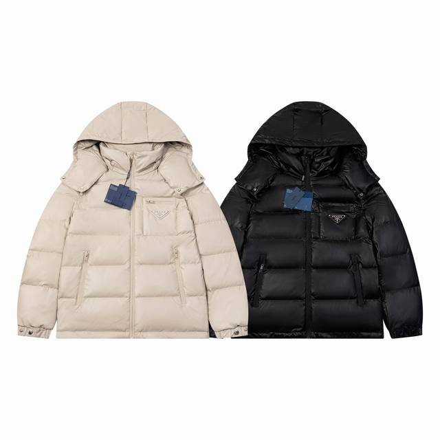 Style No. #S619 Ddd Prada Black Technology Fully Sealed Pocket Triangle Label Classic Basic Hooded Down Jacket, Correct Exclusive Version DDD Purchased from a Boutique, Original Sample Disassembly and Development, Customer-Supplied Painted DuPont Nylon Fabric, Detachable Hood, High-Neck Design DDD Waterproof Zipper Closure, Side Zipper Pockets, Elastic Cuffs, National Standard White Duck Down Filling, Up to 430% Filling, 100% Polyester Fiber, Four-Layer Thickening Construction, High Density to Prevent Down Leakage and Divesing, Custom Mold Design, Brand Logo, Hardware Zippers, Snap Fasteners, Eyelets DDD Uses Special Technology Double-Layer Liner! Needle Inserts Will Automatically Retract, Ensuring No Down Leakage in Each Jacket, Filled with Top-Grade Polish White Duck Down (European Standard), Excellent Temperature Locking and Warmth DDD Each Down Jacket Bounces Back Immediately When Pressed, Each Jacket is Extremely Fluffy! Excellent Resilience! Warmth goes without saying, it's more breathable than ordinary down jackets, truly a breathable down jacket! DDD high-end custom-made garment, super stylish and handsome, with a three-dimensional cut design. It's highly warm, has good elasticity, and is warm and stylish without feeling heavy. It's very practical and doesn't look bulky, effectively protecting against the cold wind. DDD is made to order from a large export factory, with professional assembly line production and quality control. Accessories are custom-made, original label, water-washed, and branded packaging bag included. Colors: Black, Light Khaki. Sizes: 48, 50, 52, 54, 56.