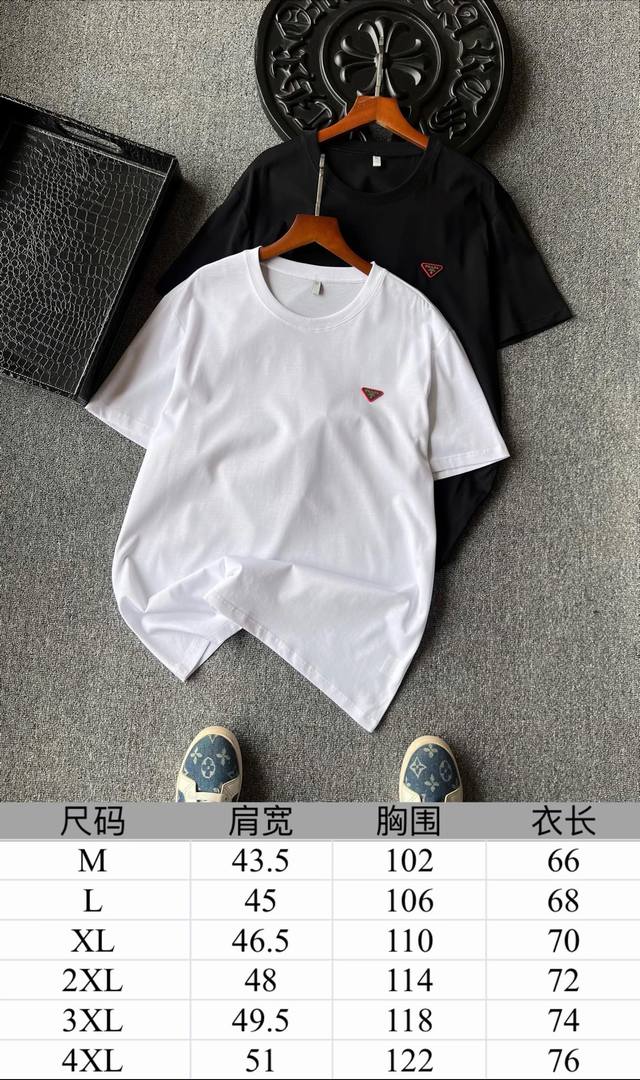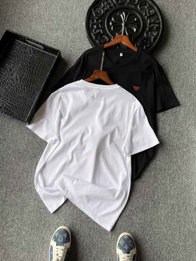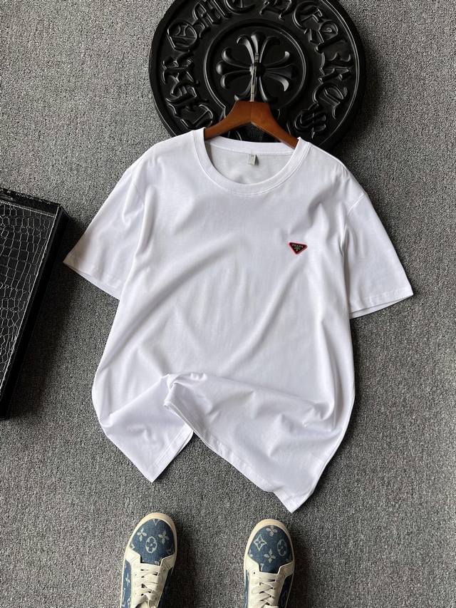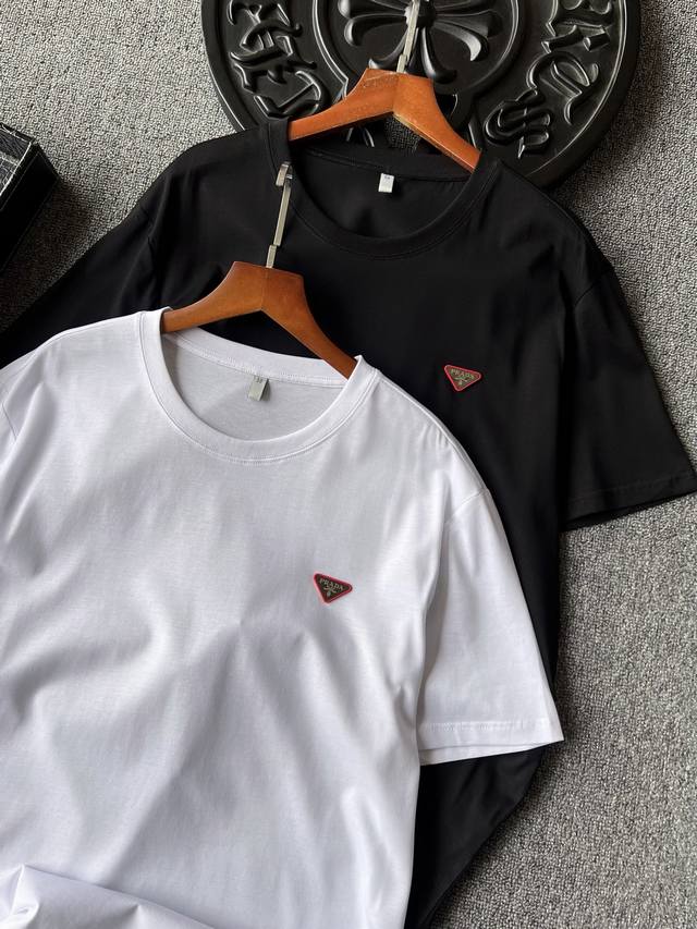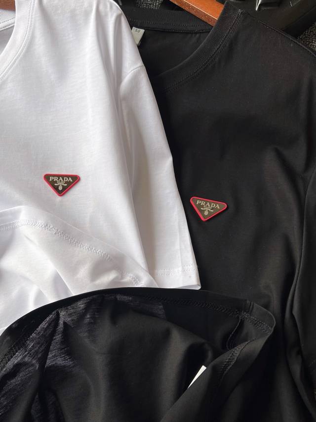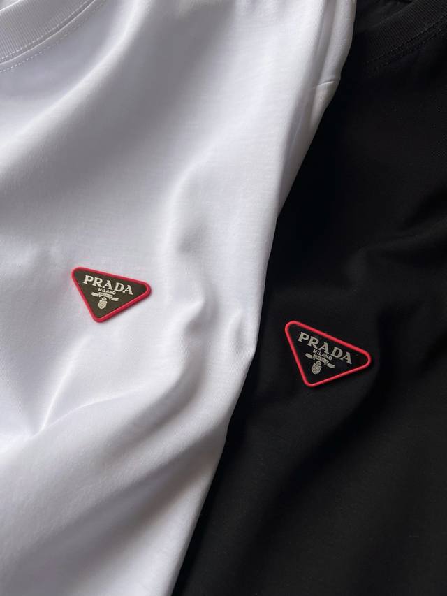 Details, details, and details again! Prada counter new jade silk T-shirt! The chest uses imported high-end powder silicone inverted triangle embedded with tungsten steel Prada laser metal label, the fine product is very delicate! Double needle collar reinforcement workmanship, the same cylinder pure cotton collar pressure strip edge treatment, more skin-friendly contact, exquisite details workmanship is quite in place!