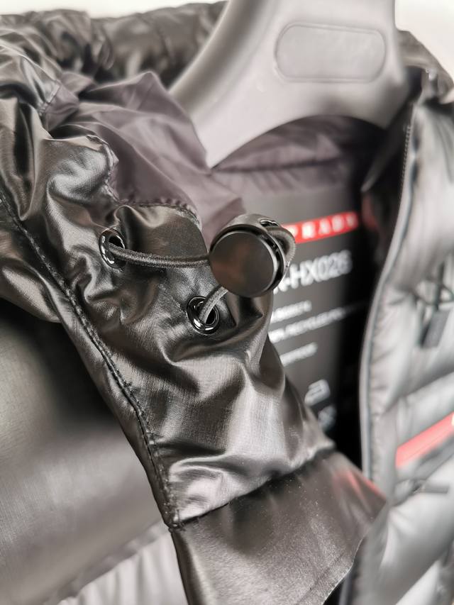 Top-quality Prada autumn/winter down jacket is here! Unisex Prada hooded down jacket, short puffer style, top-notch craftsmanship, original hardware, original washing label, impeccable details. Color: Black. Sizes: 12345.