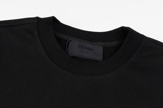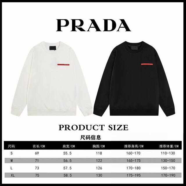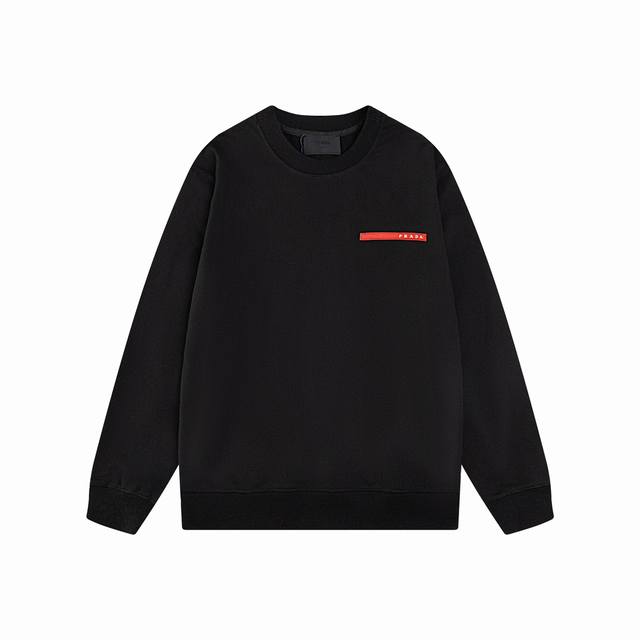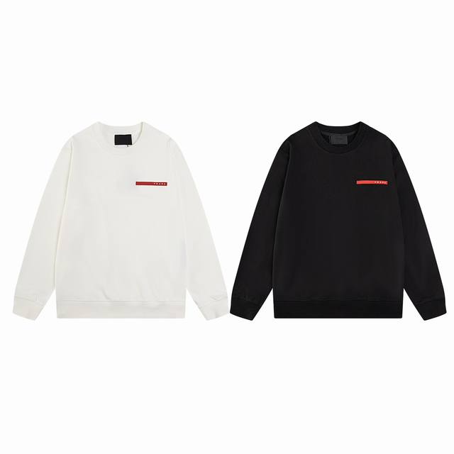 Top-tier version. Official website quality. Prada classic red silicone striped crew neck sweatshirt. Made with original, exclusively customized 400g pure cotton terry cloth fabric, extremely comfortable texture. Distinguished from other top-tier fabrics on the market, it won't shrink, deform, or pill. Paired with 430g 2X2 ribbed fabric, the ribs are dyed in the same batch, resulting in no color difference and resistance to deformation. Original 1:1 fit, original 1:1 customized accessories, neck label, care label, hang tag, packaging details are perfect. Style number: 1 #. Colors: Black, White. Sizes: S, M, L, XL.