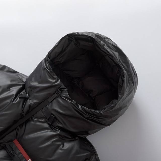 Top-tier version Prada red label autumn/winter hooded classic down jacket. A super high-quality casual down jacket with excellent value! This down jacket is made from 100% nylon material supplied by our customers. The fabric boasts superior waterproof and breathable properties, resisting the erosion of outdoor wind and rain. The fabric's feel is unparalleled