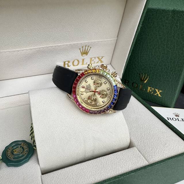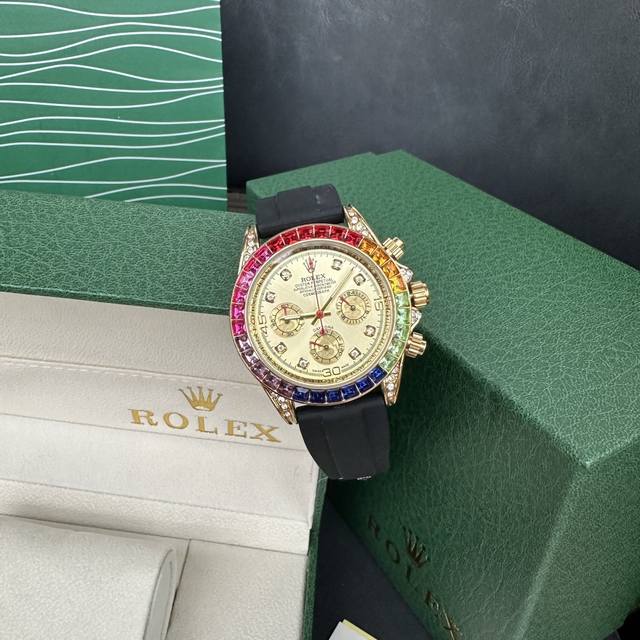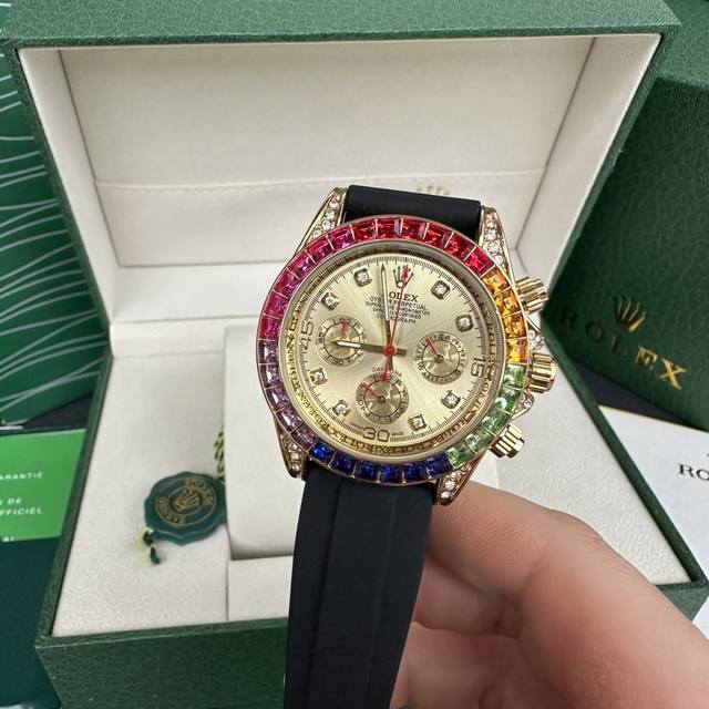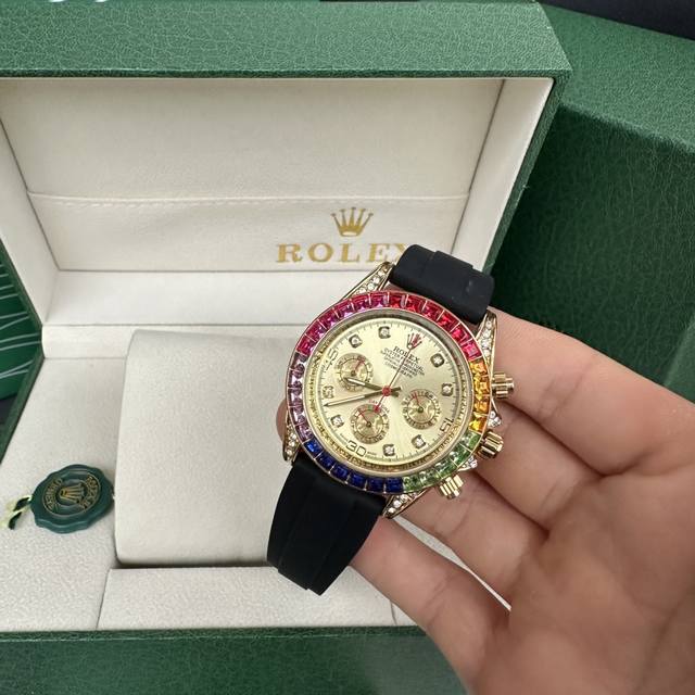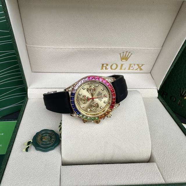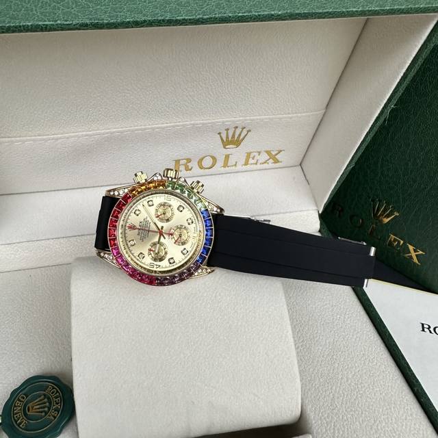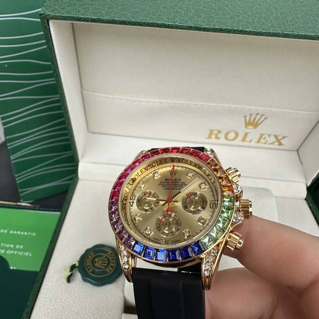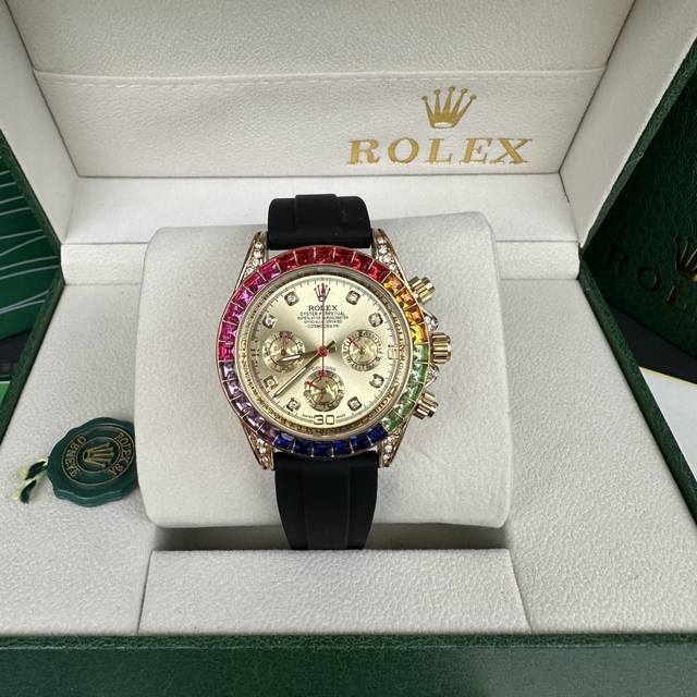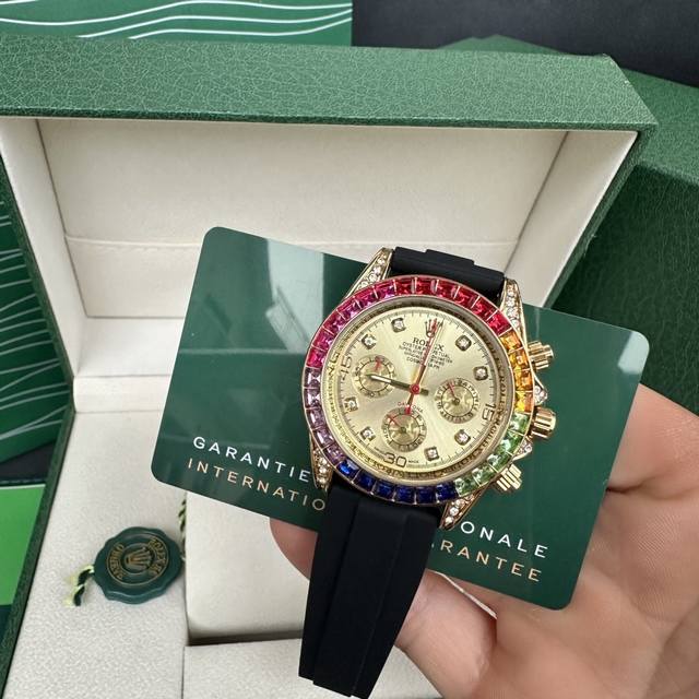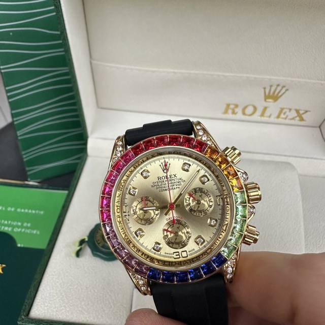Rolex Cosmograph Daytona Quartz Series Gold Full Diamond Luxury Watch, Rubber St
