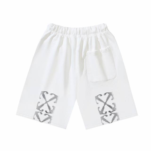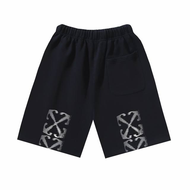 1198# Off-White Brushed Cotton Terry 450G Heavy Phantom Arrow Print Shorts Black