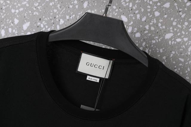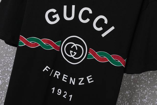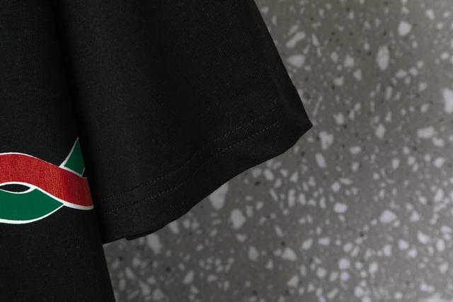 633Gucci Unisex 32S Double Yarn Cool Cotton 250g Weight High Quality Red and Green Hemp Rope Series Counter Same Plate Digital Direct Printing Process - Color Black and White - Size Xs-L-