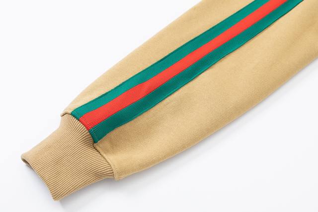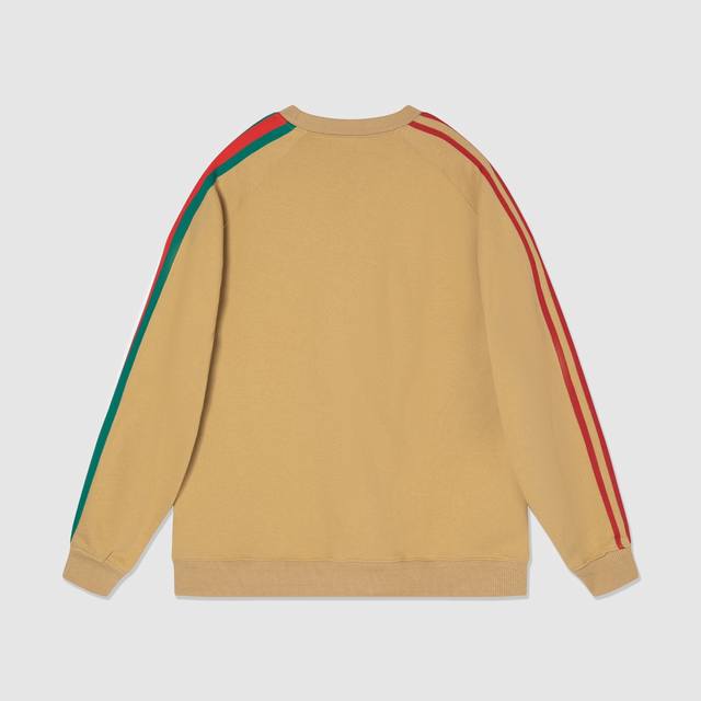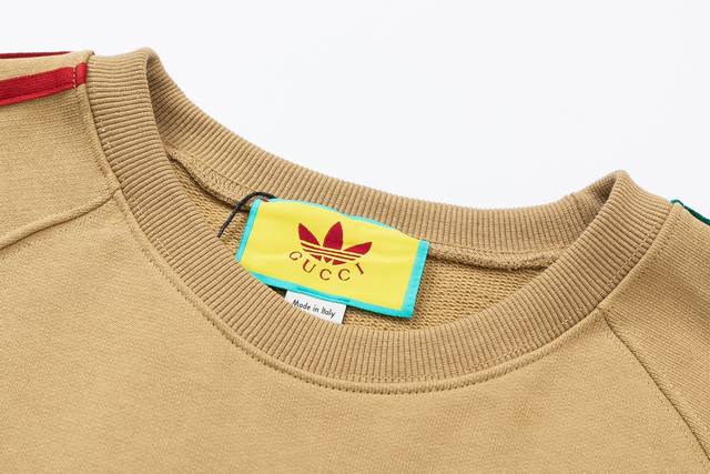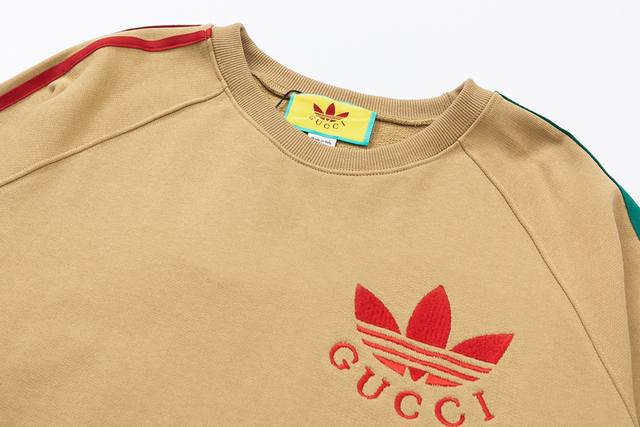 752 Gjia+ joint unisex style - loose European version 460g high-quality precision double-strand crew neck hoodie limited edition new AdidasxGucci joint series inherits the brand history and iconic design in the combination of three lines Gucci trefoil embroidery craft - color khaki - sizes XS-L-