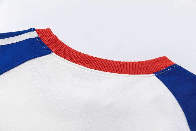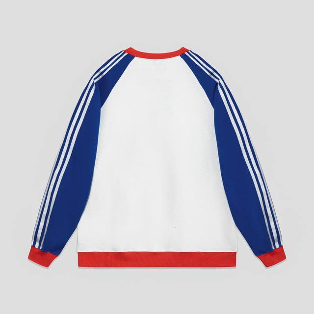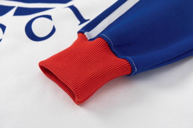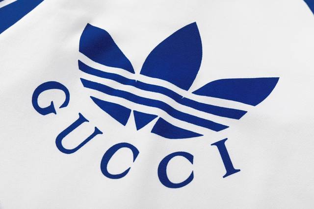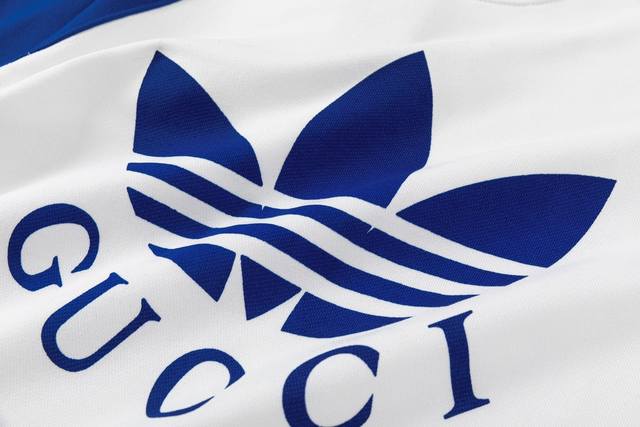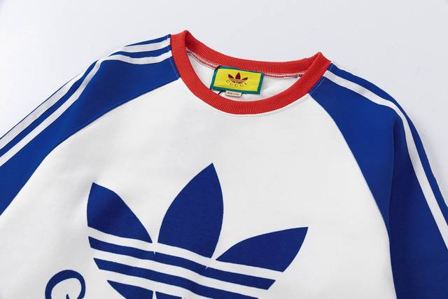 833G Unisex Style - Loose European Edition 460g High-Quality Precision Double-Strand Crewneck Sweater Limited Edition New Counter Exclusive Limited Edition Joint Series Gg Letter Interwoven Pattern Cleverly Paired with White Three Stripes and Trefoil Logo Contrast Technology - Color White and Blue - Sizes Xs-L-