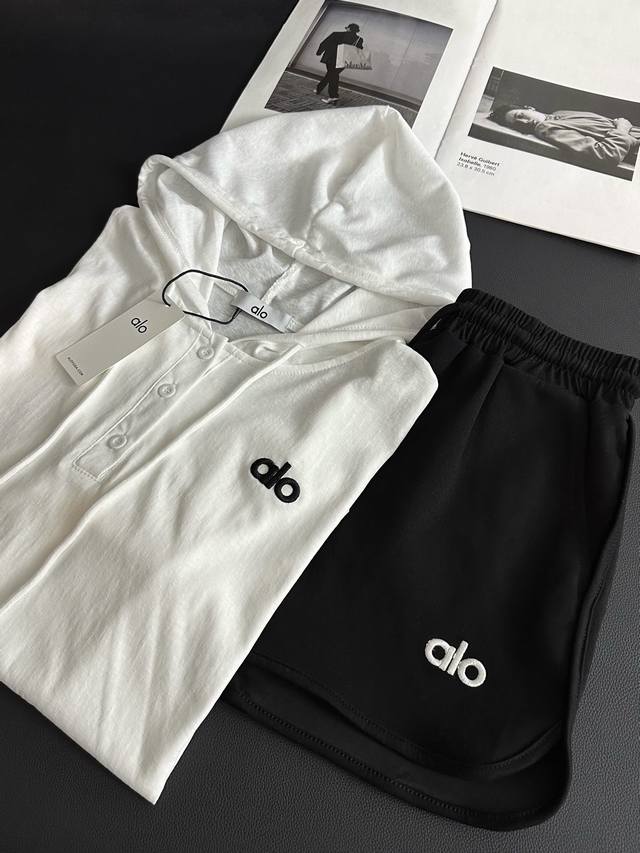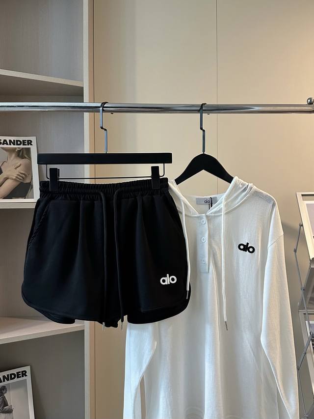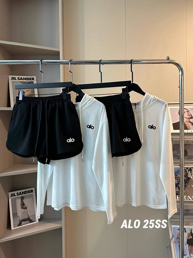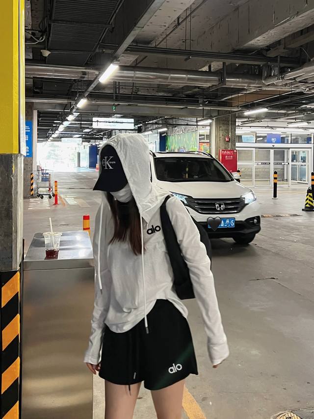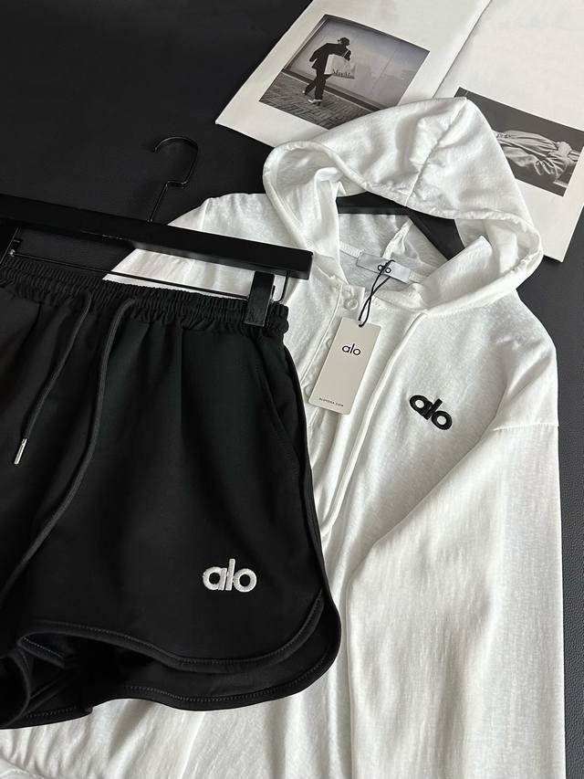 A set of 25Ss letter embroidered hooded sunscreen long-sleeved shorts suit The p