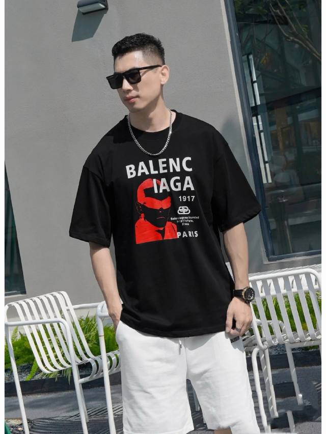 A309# Balenciaga printed short-sleeved T-shirt - The fabric has been shrunk twic