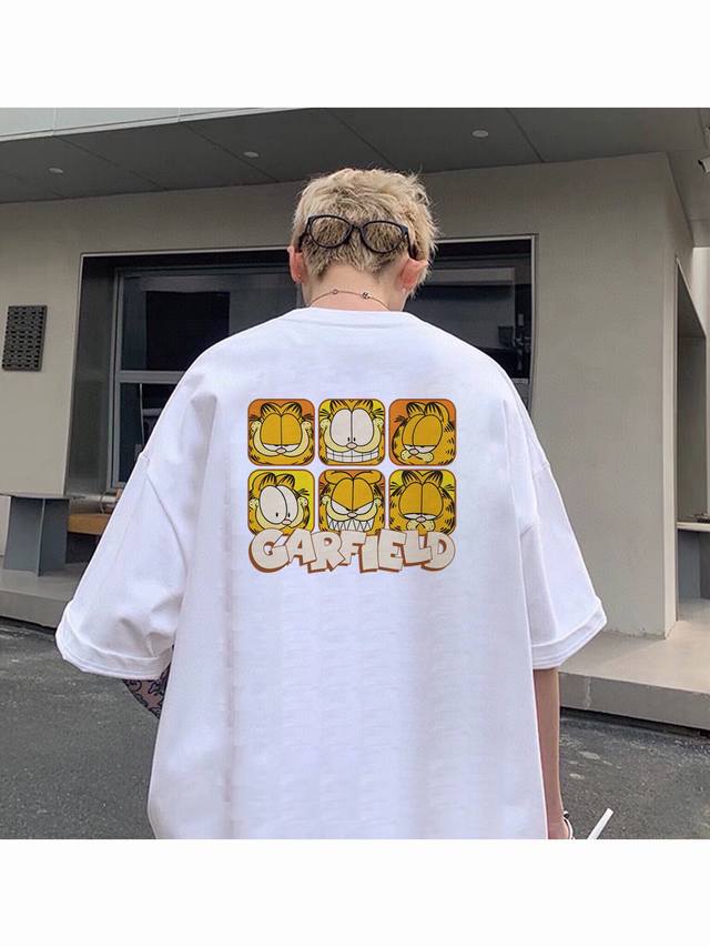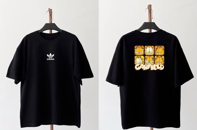 A357# Adidas Originals T-shirt with three-leaf clover and Garfield, unisex short-sleeved couple style