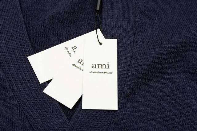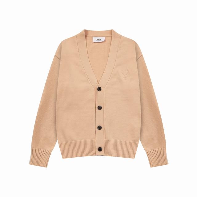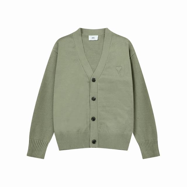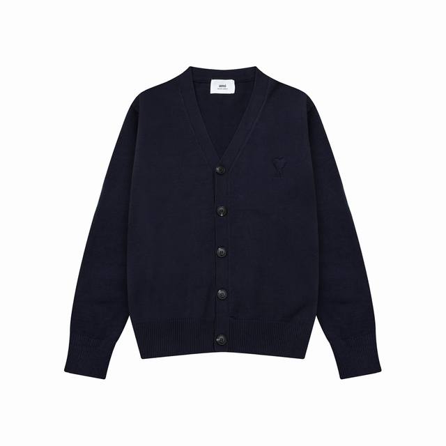 A8170 Ami Paris Autumn/Winter New Arrival: Solid Color V-Neck Wool Cardigan with