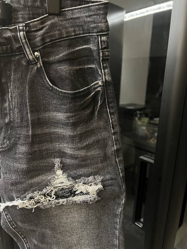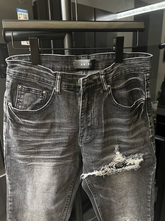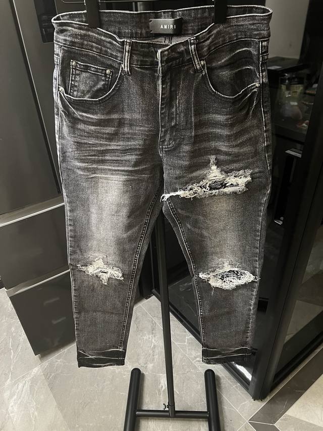 Amiri Mx1 25Ss Knee-cut Holes Cashew Washed Jeans Black Size: 28 30 32 34 S-Xl C